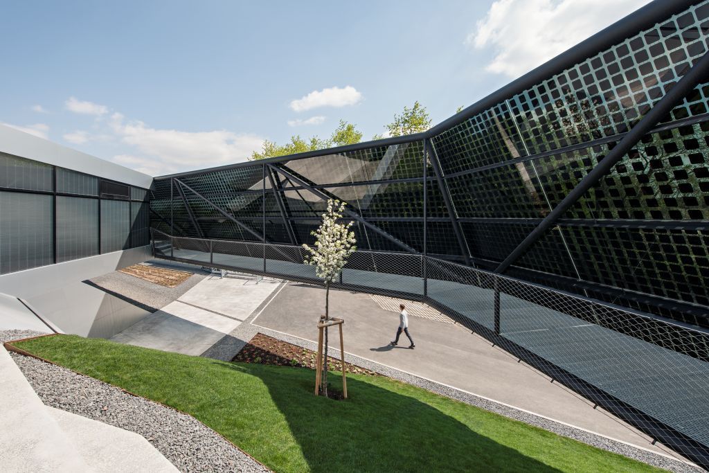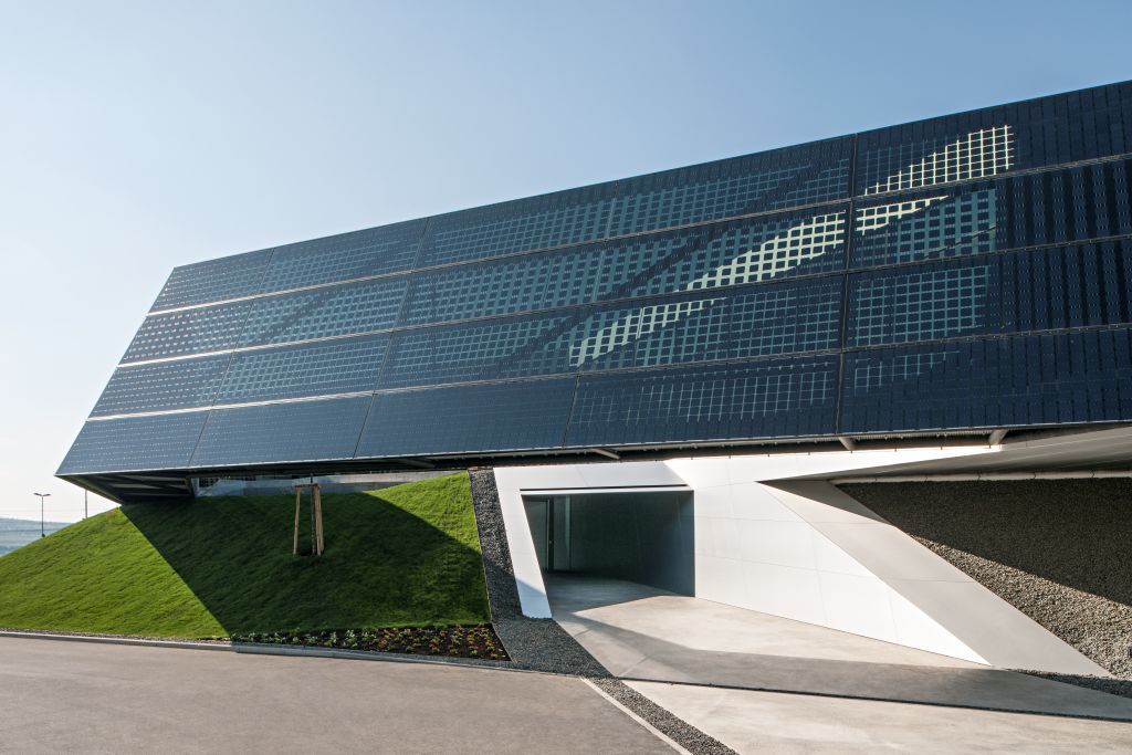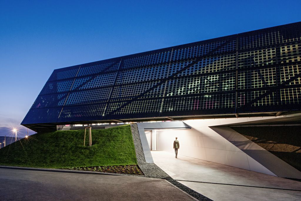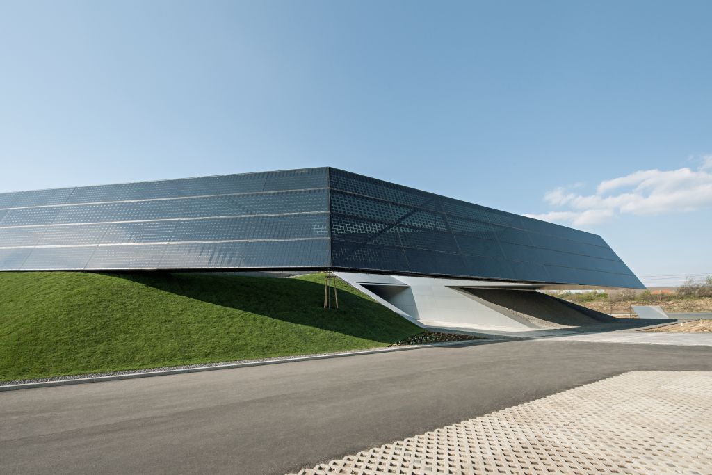 Seit 1997 wirkt das Familienunternehmen in Entwicklung und Betrieb von Windparks. Wegen der raschen Expansion - mit 12 Mitarbeiter:innen betreute man bald 100 Windräder - wurde eine Alternative zum alten Standort im Seewinkel nötig. Allein die Wahl des neuen Bürositzes charakterisiert die Haltung der jungen Bauherrschaft. Bewusst entschied man sich für die Pionierrolle in einer neu ausgewiesenen Gewerbezone direkt an der Bahnstation Parndorf-Ort, wo auch ein Park&Ride-Parkplatz und eine Busstation situiert sind. „Wir wollten noch im Burgenland bleiben, aber an einer Stelle, von wo mit öffentlichem Verkehr in 30 Minuten Wien erreichbar ist. Sonst wäre das nicht kohärent mit unserer Branche, unserem Berufsbild.“ Für den Bau selbst wurde privat ein Wettbewerb mit sechs Teams ausgelobt, die Ausschreibung mit Unterstützung eines weiteren Architekten bewerkstelligt und - nach Präsentation und Diskussion mit allen Teams - „der mutigste Entwurf“ ausgewählt. Die markante Form reagiert auf die Emissionen am Ort und die energetische Optimierung. Im nördlichen Schenkel des rautenförmigen Baukörpers sind die Büros im „Rücken“ stark abgeschirmt, nach vorne aber geöffnet zu einem Hof, und den umfasst, zum Teil auskragend, der südlichen Rauten-Schenkel, der als sehr exquisites Tragwerk ein „Solarkraftwerk“ aus PV-Paneelen präsentiert. (Jurytext: Otto Kapfinger)