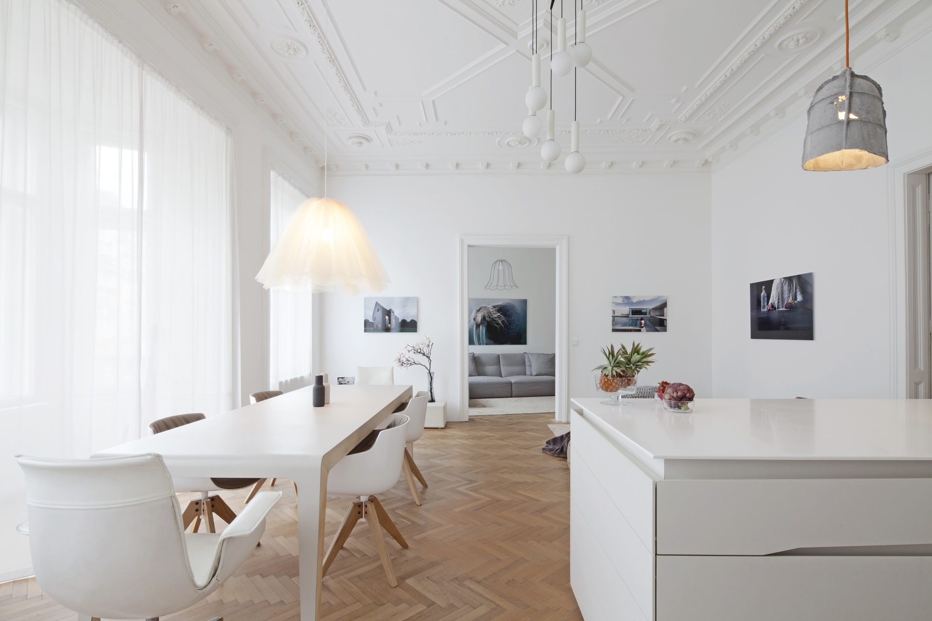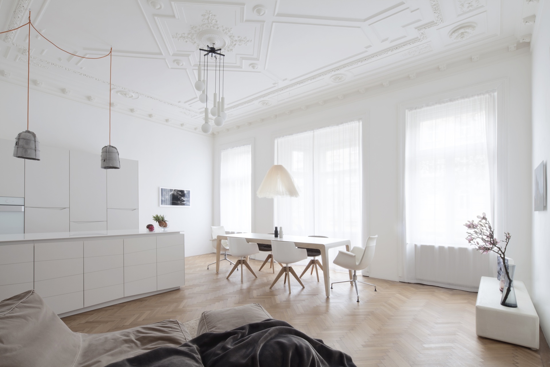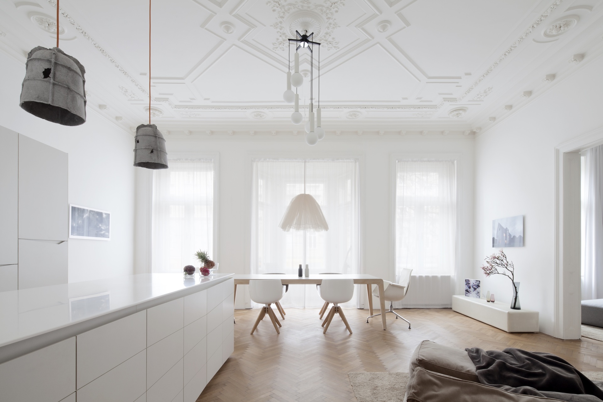 Die typische Altbau-Raumstruktur wurde den Anforderungen an einen modernen Wohnstil angepasst. Die Küche wurde in den Wohnbereich integriert, um ein zusätzliches hofseitiges Kinderzimmer zu erhalten. Auch das ehemalige winzige Badezimmer wurde als Bettnische in das neu geschaffene Kinderzimmer integriert.