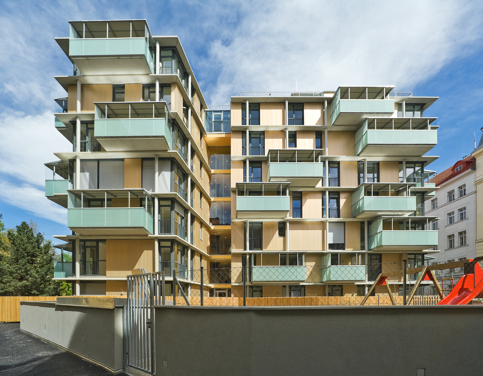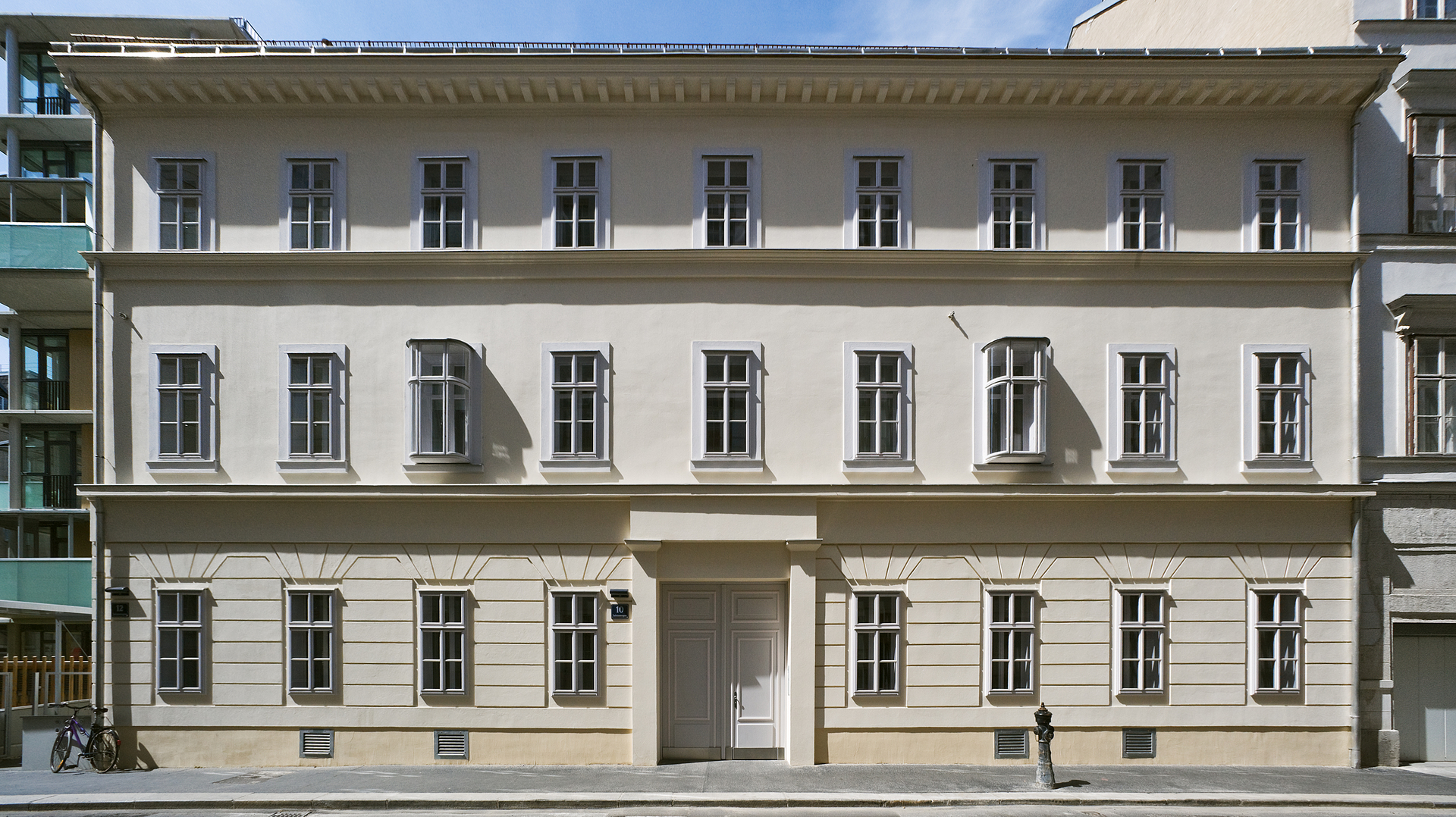 Die beiden orthogonal zueinander stehenden Flügel des Neubaus bilden mit dem Biedermeierhaus ein Ensemble. Dieser Typus des nunmehr einzigen erhaltenen biedermeierlichen Stutzflügelhauses war ursprünglich die das Umfeld prägende Struktur. Das Haus befindet sich im vierten Wiener Gemeindebezirk in einem Viertel unweit der Karlskirche, dessen Nebenstraßen von engen Straßenschluchten geprägt sind.Das Zusammenspiel von Alt und Neu ermöglichte hier eine begrünte Aufweitung der Gasse und vermittelt zum großzügigen Grünraum im Inneren des Blocks. Die neuen Baukörper „nähern“ sich dem Altbau, sie respektieren die Autonomie des historischen Objekts, bilden aber im räumlichen Zusammenhang ein neues Ensemble. Dieser geöffnete „Block im Block“ stellt den Bezug zu den großvolumigen Nachbarbauten her.