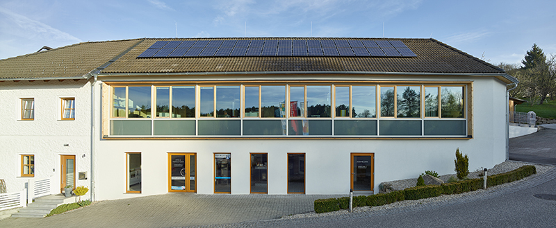In der zweiten Bauetappe wurde schließlich das neue Büro am Platz des ehemaligen Kornspeichers errichtet und mit einem Steg der sich über den Hof spannt mit dem Magazin verbunden. Nach der Übersiedlung des Büros vom Erdgeschoss in das Obergeschoss wurde zuletzt das alte Büro in Schauräume für Öfen und Saunen umgewandelt.