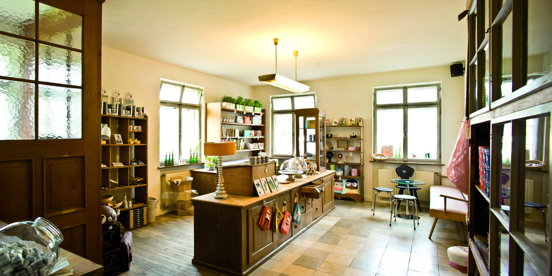 Der regional typische Wirtshausgrundriss mit Mittelgang und seitlich angeordneten Aufenthaltsräumen wurde erhalten: in diesem Fall sind links die Gaststube, rechts wie bisher ein hauseigenes Ladenlokal zu finden. Bei Veranstaltungen wird der Korridor als erweiterter Barraum mitgenutzt.