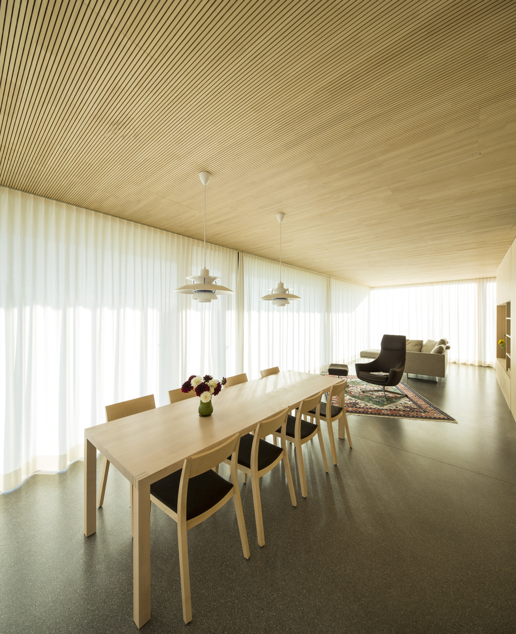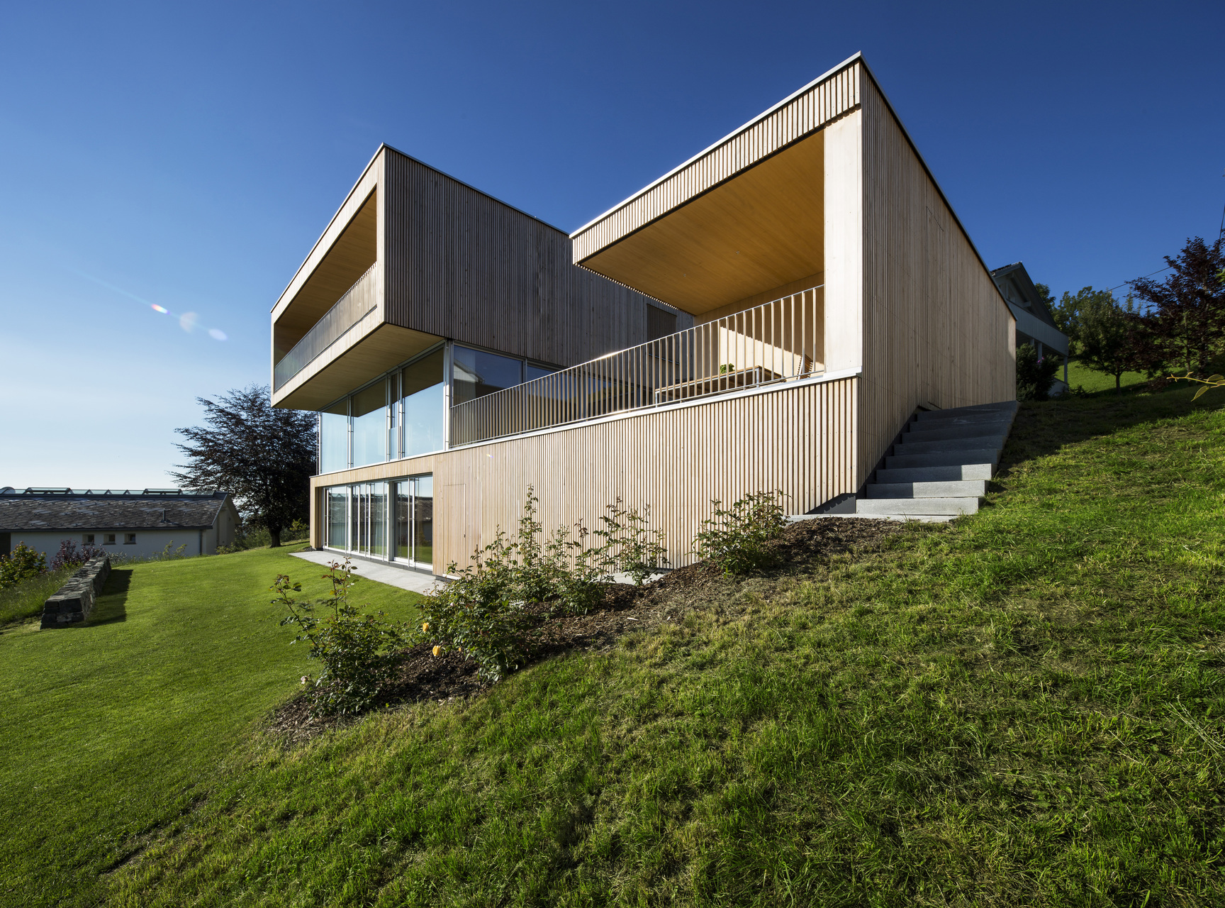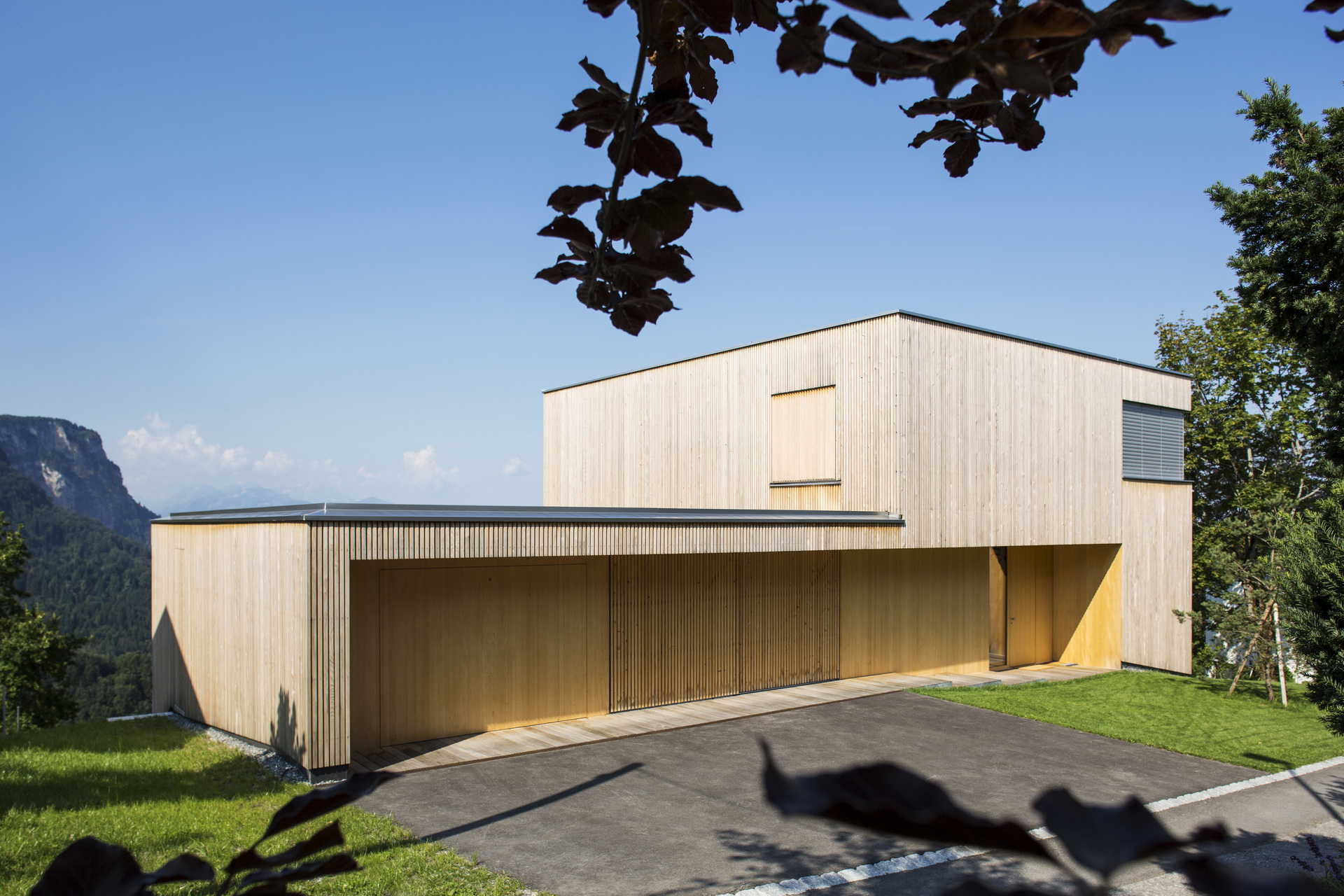 Der Holzständerbau über einem Hanggeschoß aus wasserundurchlässigem Beton wurde von einem Vorarlberger Zimmererbetrieb als Generalunternehmer umgesetzt. Die hohe Ausführungsqualität aller Gewerke zeichnet das Gebäude aus.