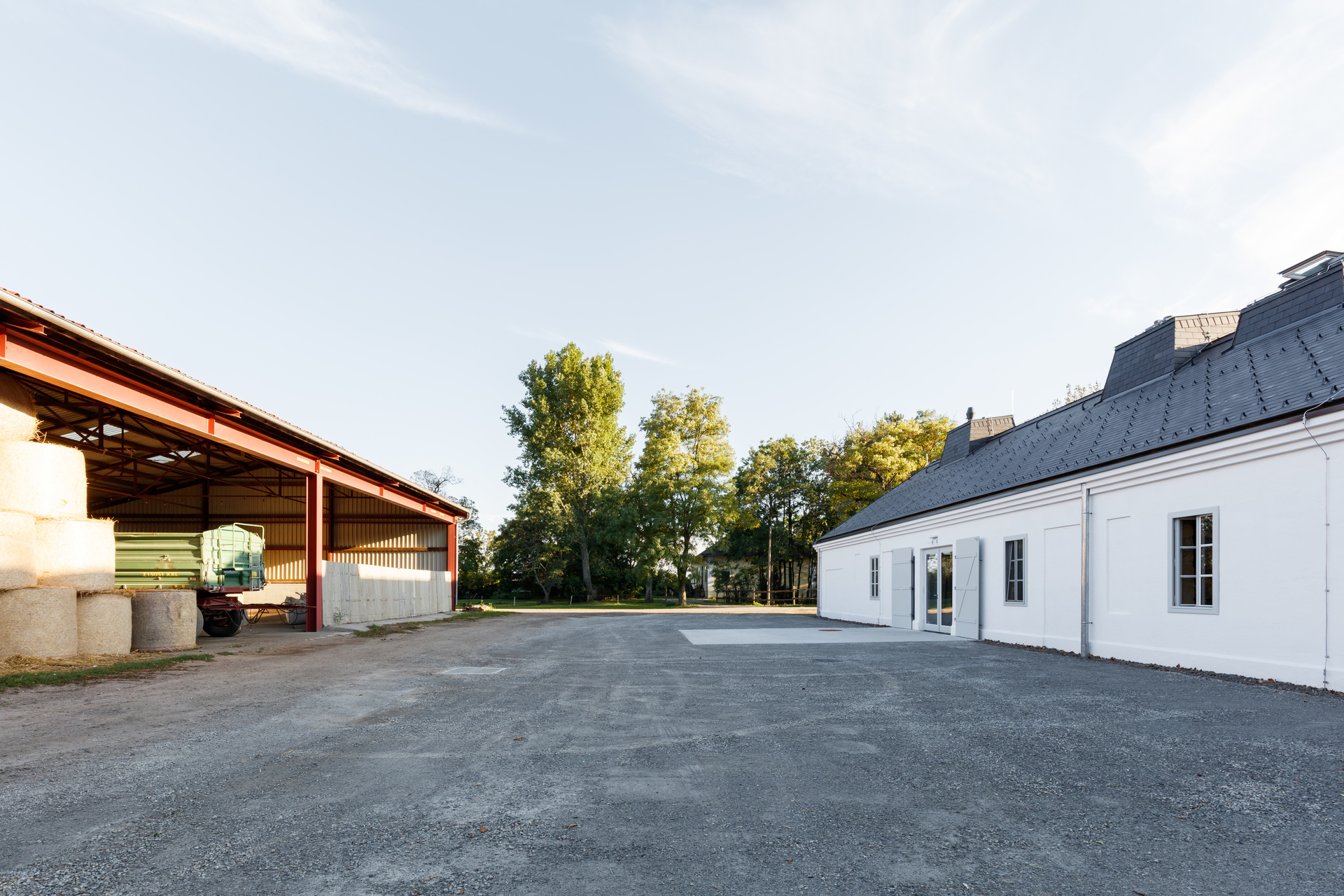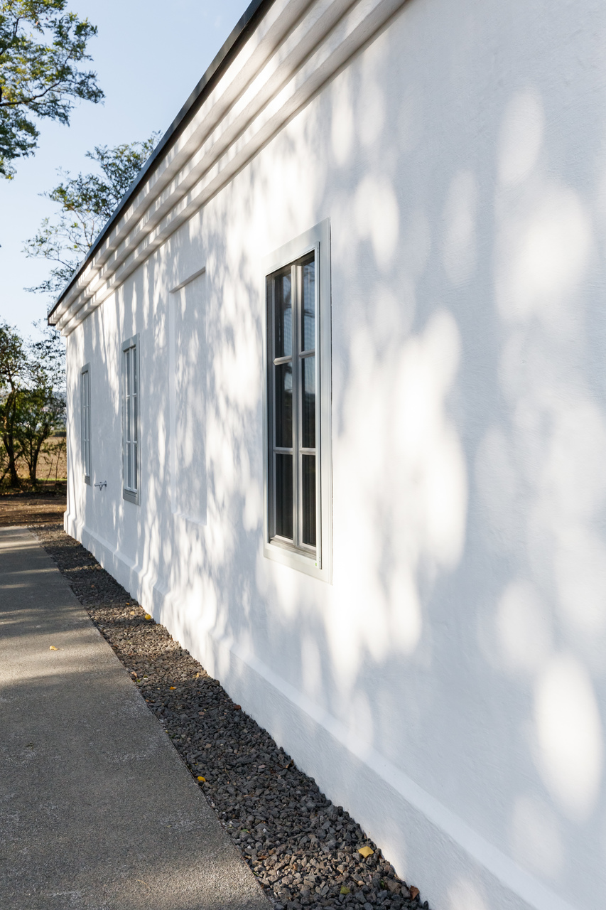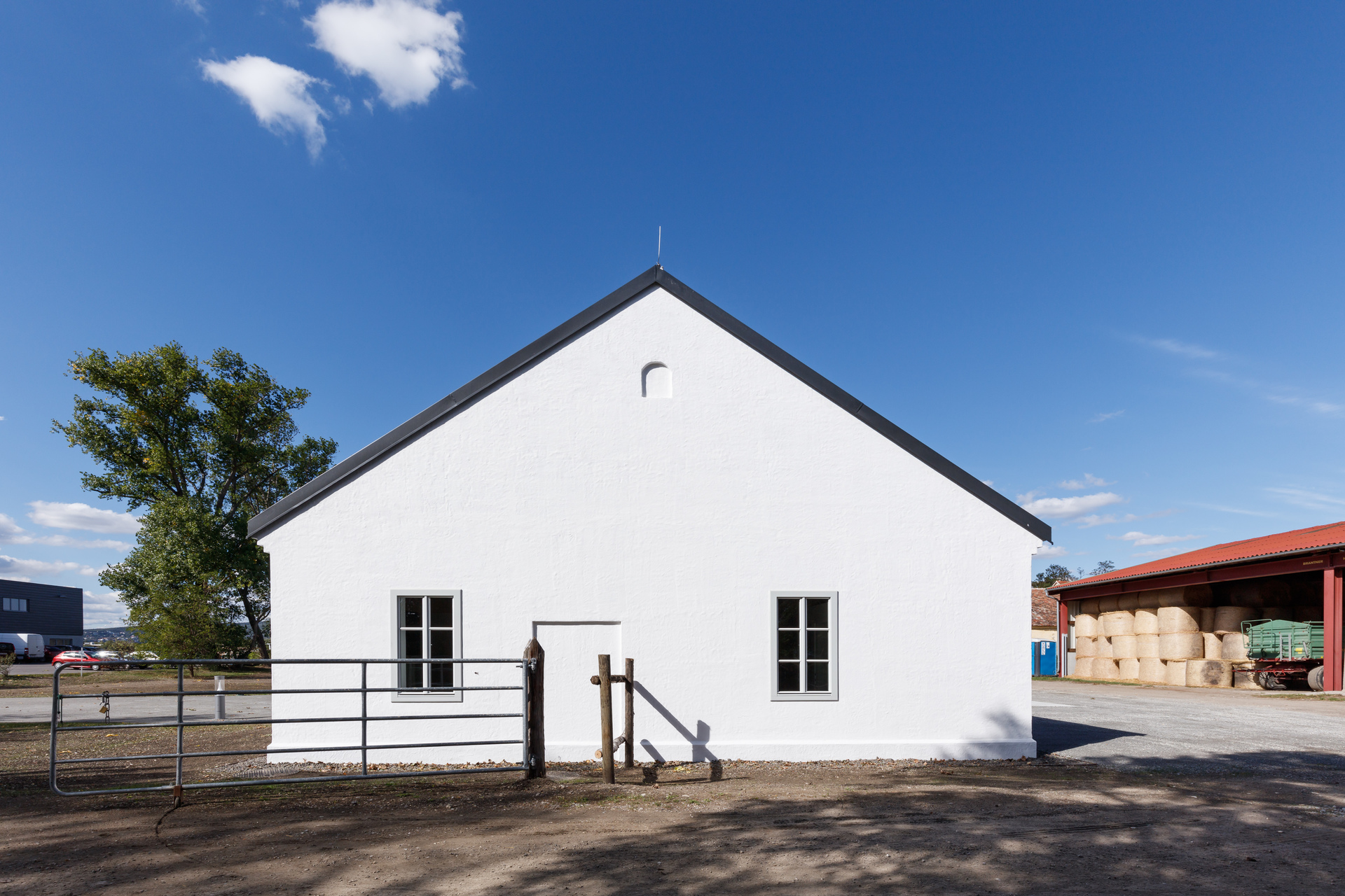 Die Einfachheit des horizontalen Langhauses, einer markanten burgenländischen Gebäudetypologie, fügt sich ideal in die umliegende, weitläufige Landschaft ein.