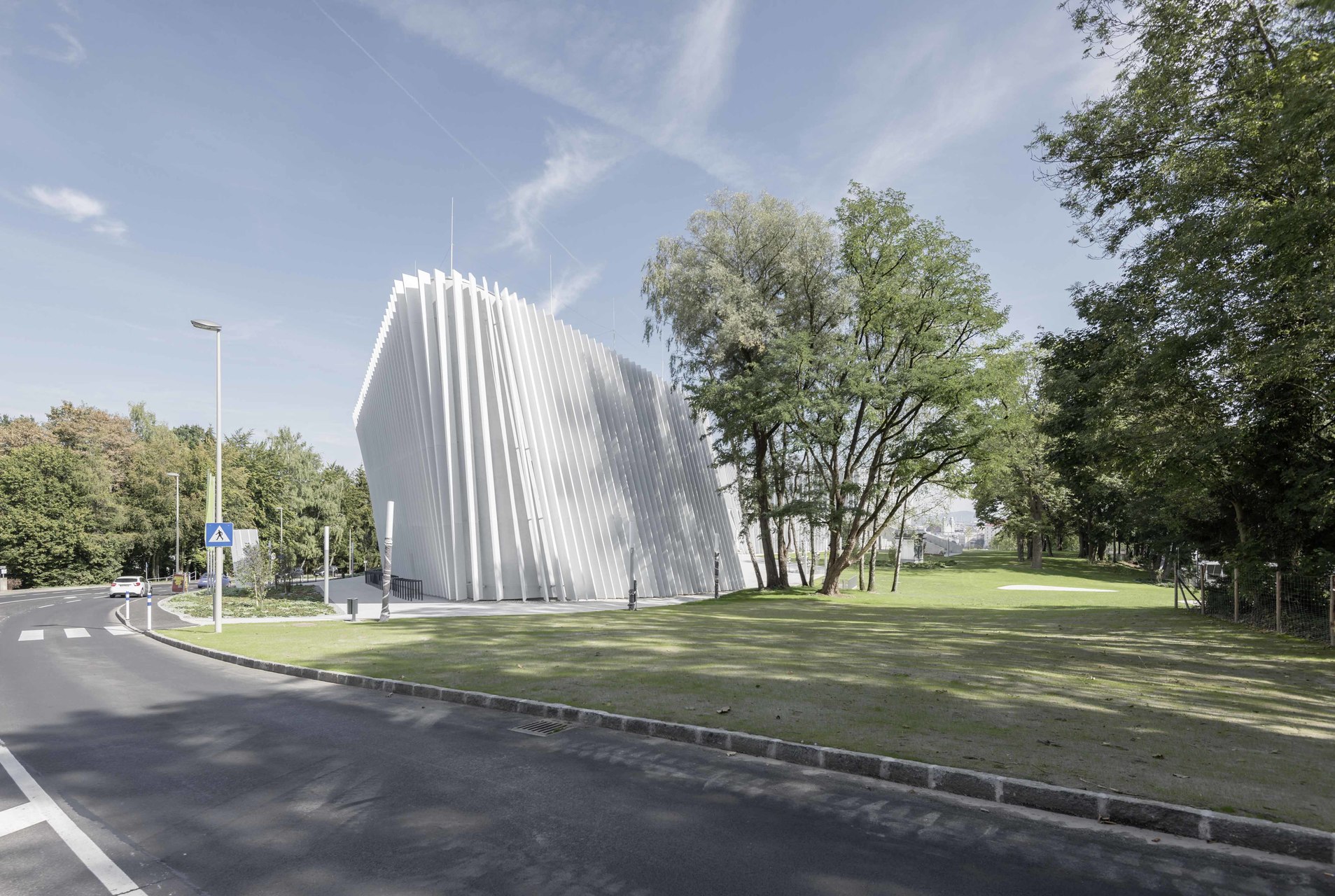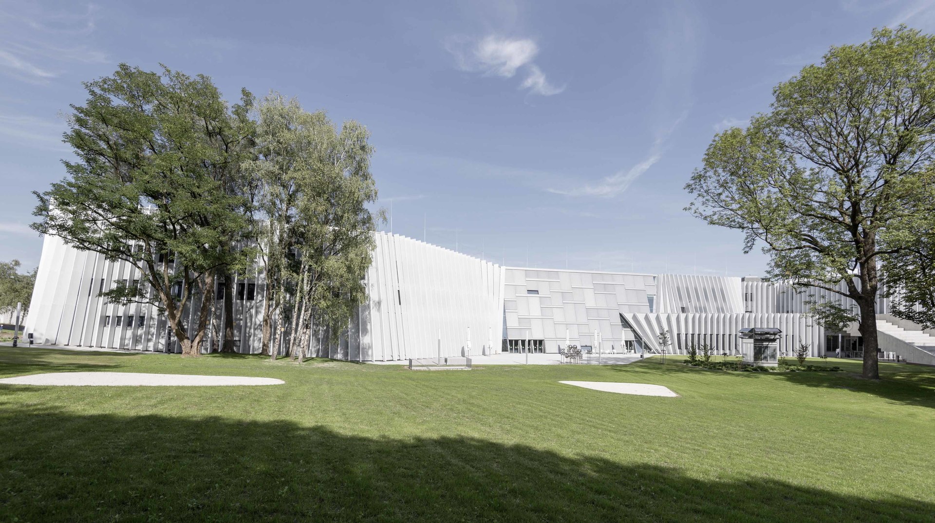 Die Architekten des neuen Bruckner-Universitätsgebäudes haben sich viel vorgenommen: Ein umweltfreundliches Passiv-Haus sollte es werden, mit filigraner Schall- und Akustiktechnik und auf dem neuesten Stand. Eingehüllt in 365 Lamellen, die dem Haus ein unverwechselbares Gesicht geben.