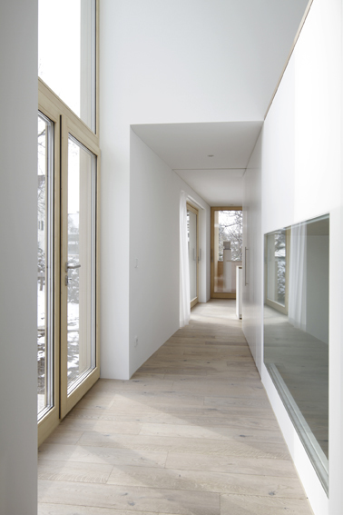 Das Energiekonzept ist auf Passivhausstandard ausgelegt. Die geringe Restenergiemenge für Warmwasseraufbereitung und Heizung wird mittels Fernwärme von der Wärmepumpe des Nachbarhauses bereitgestellt. Eine kontrollierte, zentrale Wohnraumlüftung sorgt für optimale Luftqualität und geringe Wärmeverluste. (Text: Julia Ess nach einem Text des Architekten)