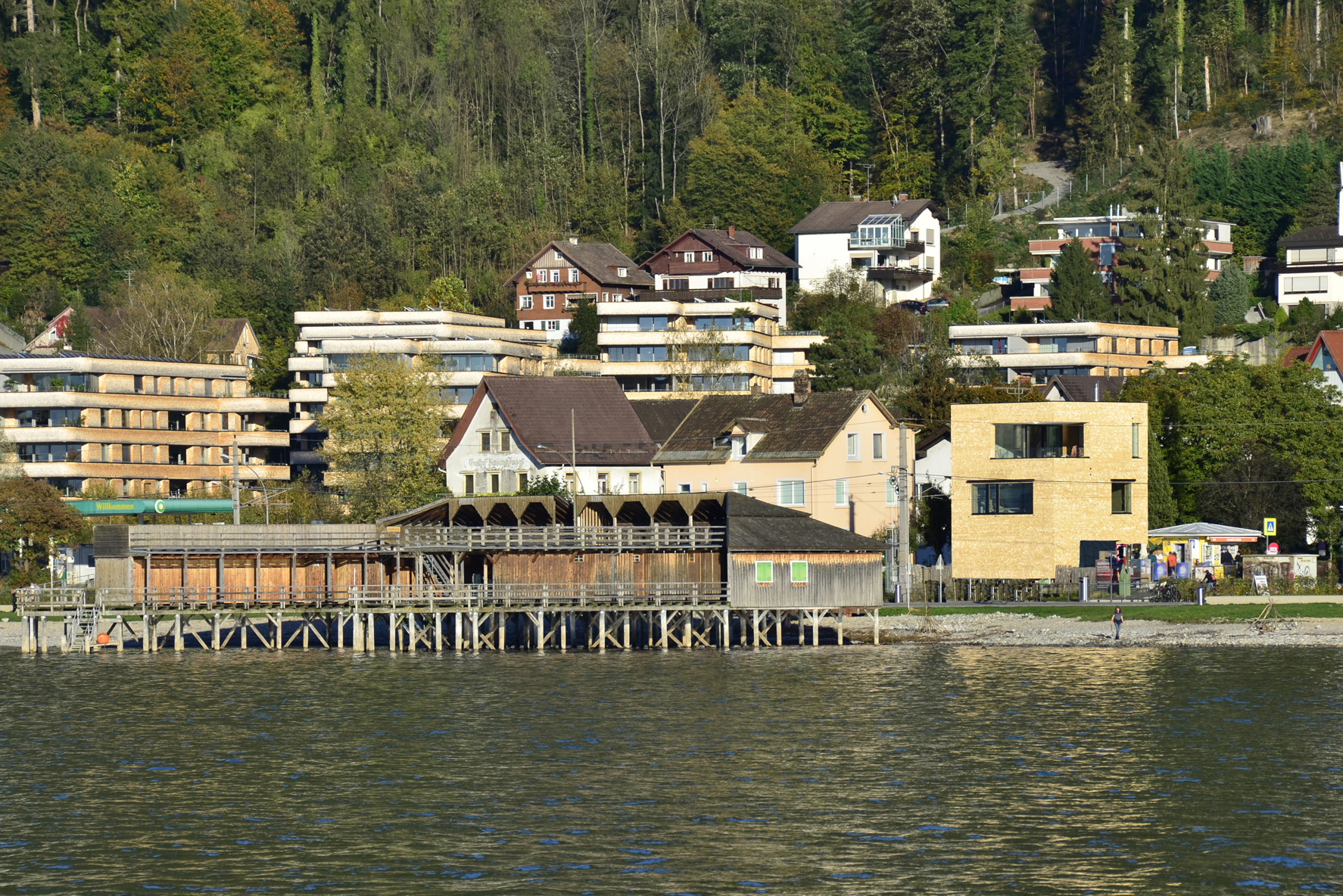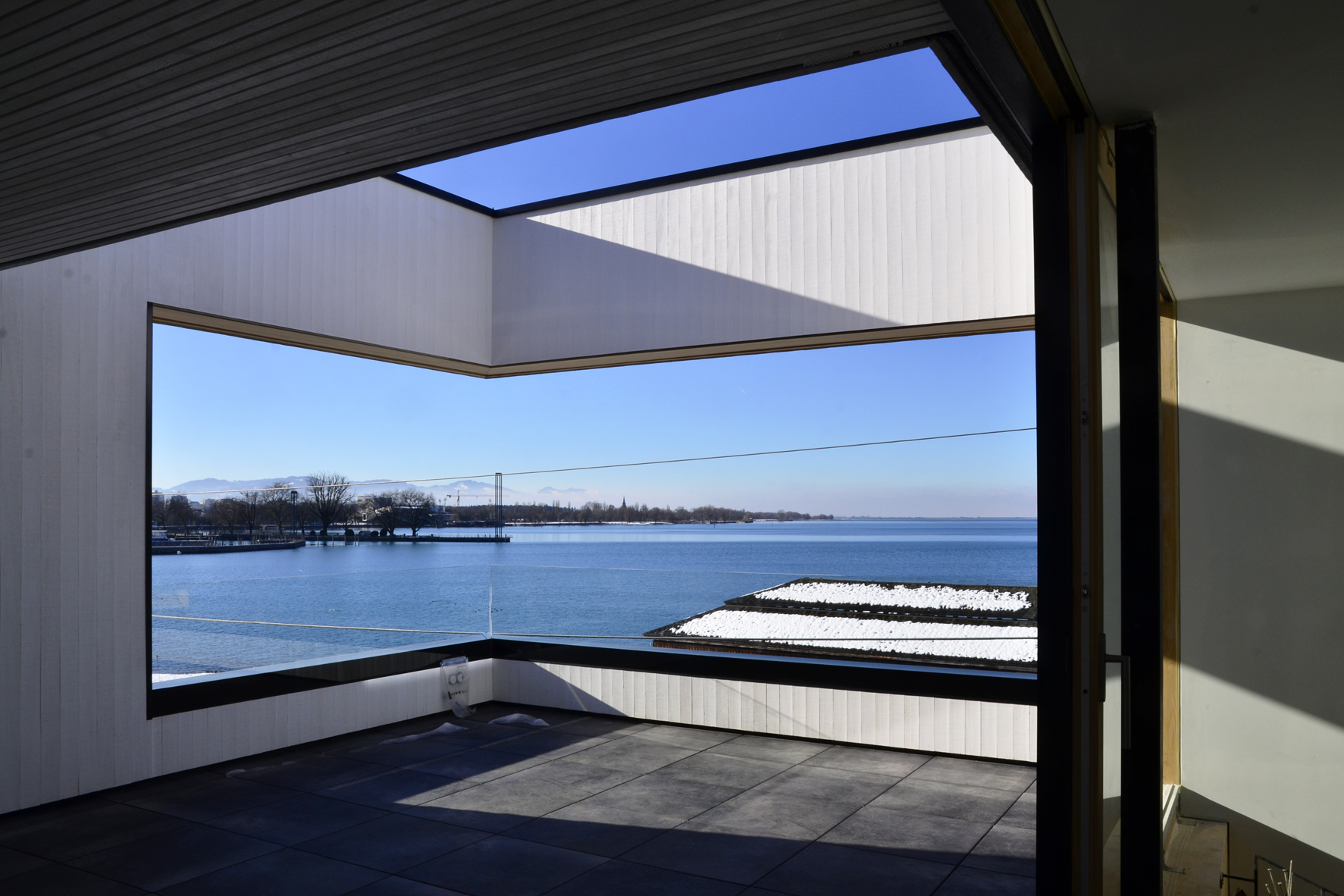 Aus dem ehemaligen Bahnwärterwohnhaus ist durch sensiblen Umgang mit der Substanz und eine geeignete Ergänzung ein neues und eigenständiges Gebäude entstanden. Bei nicht ganz einfachen Bedingungen des schmalen Grundstücks zwischen Straße und Bahn ist es gelungen, die einzigartige Aussichtslage unmittelbar am Bodensee zu nutzen. (Text: Tobias Hagleitner nach einem Text der Architekten)