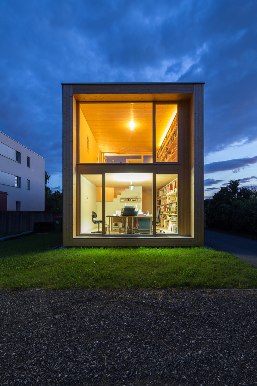 In der Zukunft kann bei geänderten Bedürfnissen die Aufteilung und Nutzung des Gebäudes mit wenigen Eingriffen angepasst werden. Wohn- oder Bürofläche können einfach reduziert oder erweitert werden. Durch das Vorhandensein von zwei vertikalen Erschließungen können aber auch zwei getrennte Wohneinheiten entstehen. (Text: Julia Ess)