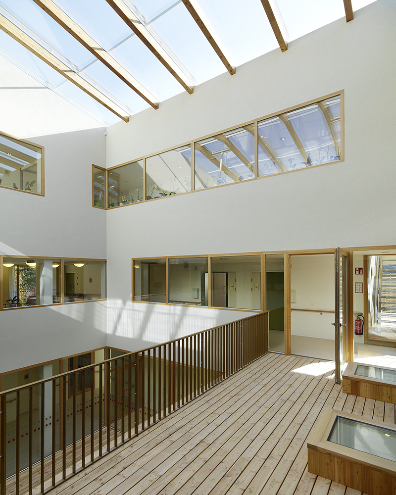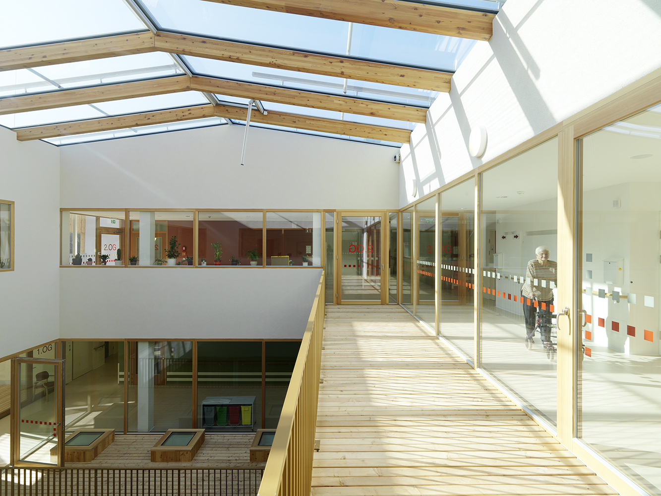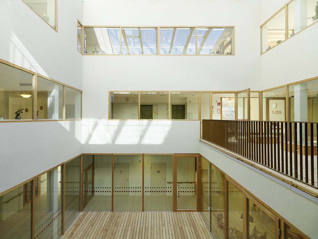 Wichtige Entwurfsparameter waren Lichtführung und Aus- bzw. Durchblicke, die auch von außen ablesbar sind. So wurde darauf geachtet, nicht nur über Wintergarten und Terrassen, sondern auch durch genau gesetzte Öffnungen in den Gangbereichen Tageslicht ins Gebäude zu holen und dunkle, nur künstlich erhellte Bereiche zu vermeiden.