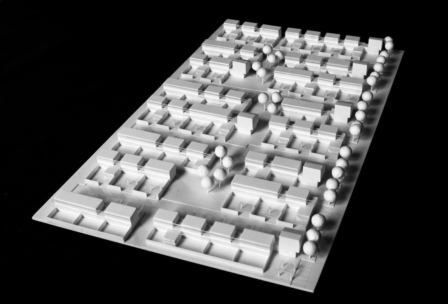 Durch die Anordnung der feingliedrigen Baukörper am Grundstück entstehen Haupt- und Nebenstraßen, Erschließungswege und verkehrsberuhigte Freiflächen, die der Anlage eine stadtähnliche Struktur geben und die durch die individuelle Bespielung der Bewohner belebt und geprägt werden. (Text: Marlene Bartelme)