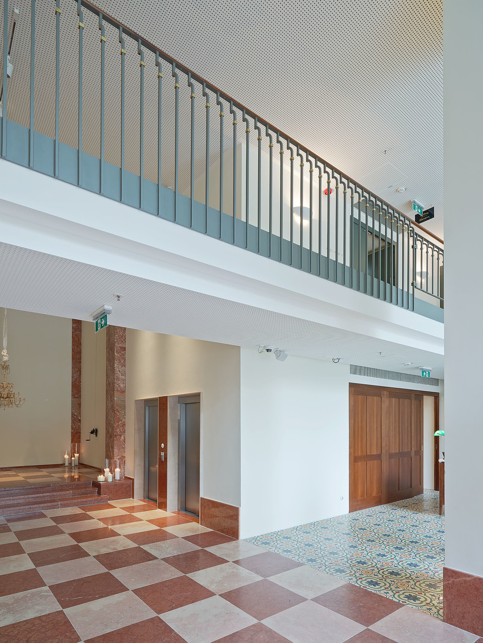 Im Zuge der Umbauarbeiten wurden zwei der drei Hoftrakte abgetragen und neu errichtet. Eine nahezu komplette Aushöhlung und innere Neustrukturierung beließen sprichwörtlich keinen Stein auf dem anderen. Aufmerksame Hotelgäste entdecken vielleicht den ehmaligen Aufgang zum Bürogebäude: In einer Nische im Foyer verkörpern fünf Originalstufen, die zu einer „Kanzel“ führen, ein Zitat der alten Substanz. Das Vestibül mit seiner Marmorausstattung steht ebenso wie die Fassade seit 2003 unter Denkmalschutz.