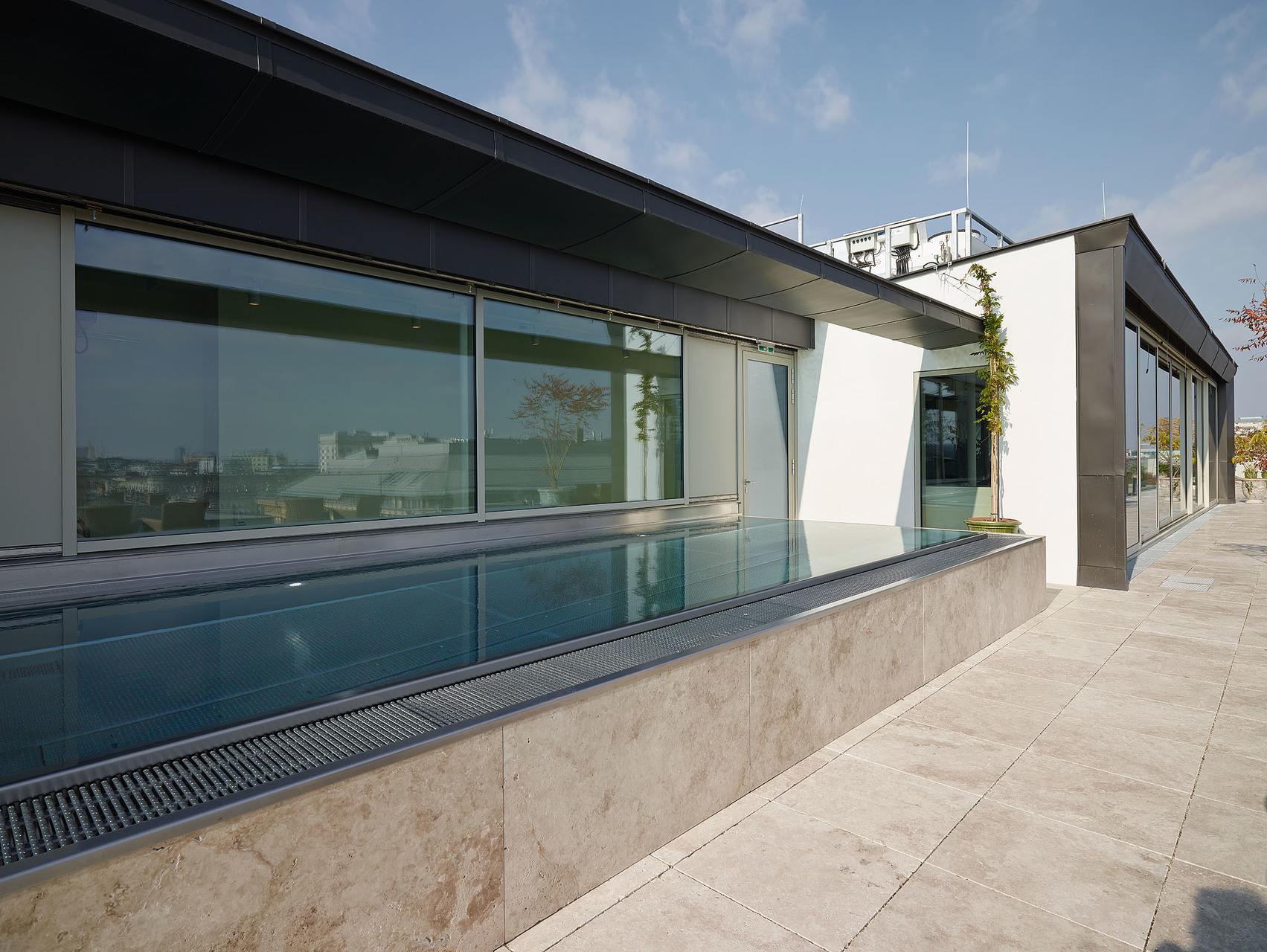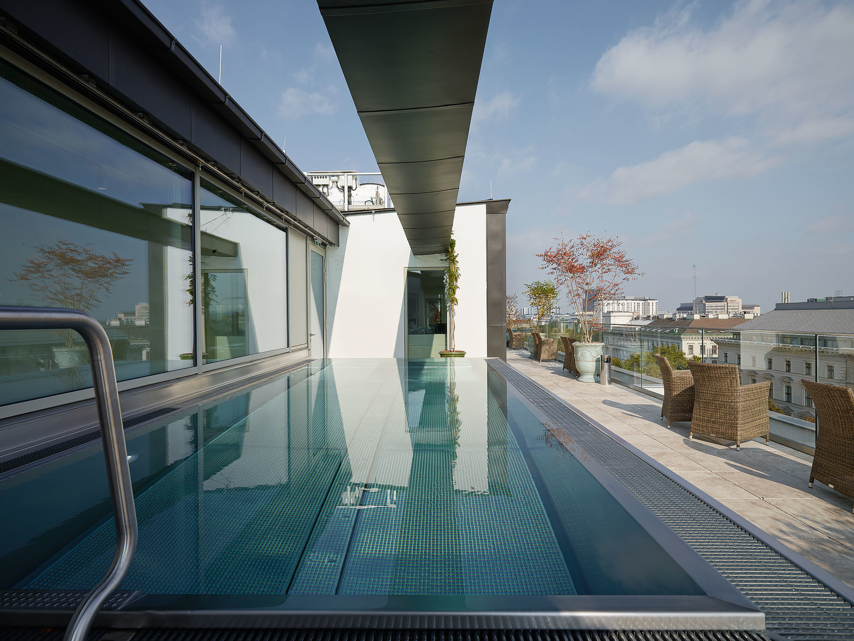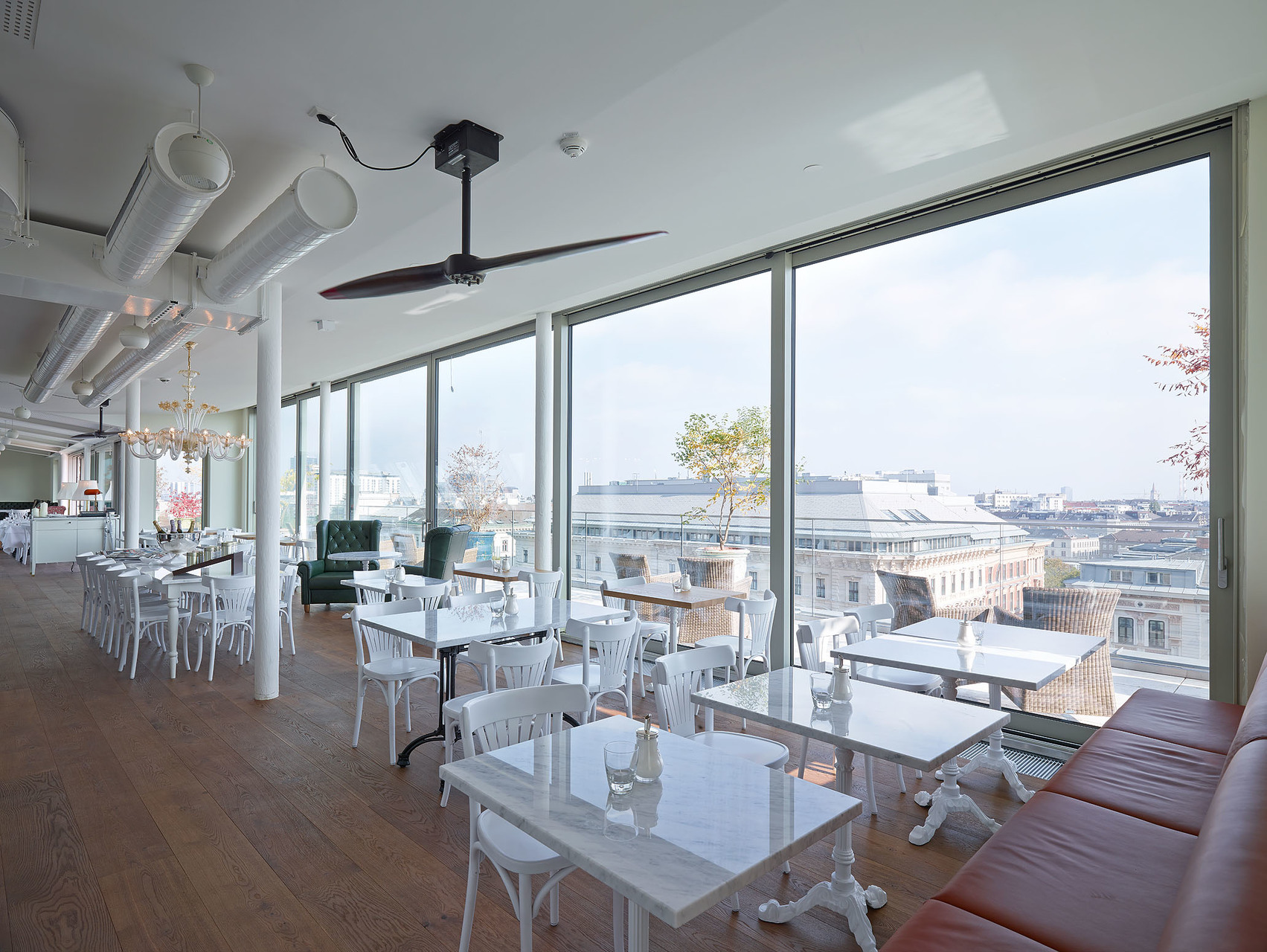Von den 188 Zimmern sind die überwiegende Anzahl als Standardzimmer ausgeführt. Vier Suiten und eine Grande Suite ergänzen das Zimmerangebot. Im achten, obersten Stockwerk befindet sich ein Restaurant mit 360° Panoramablick auf die Sehenswürdigkeiten der Umgebung und – vermutlich einzigartig für ein Hotel in Wien – ein Dachpool für die Hotelgäste.