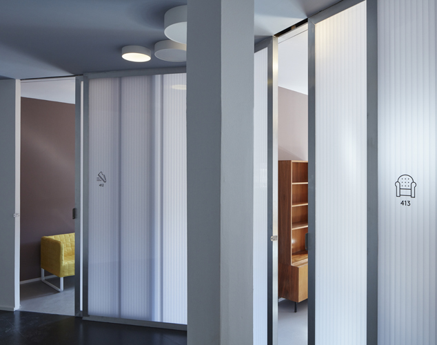 Für die Architekten war das Arbeiten an diesem Projekt ein anderes als üblich. Um mit einem bescheidenen Budget möglichst viel an Baumaßnahmen umsetzen zu können, ginge es nicht vordergründig um gestalterische Fragen, sondern vielmehr um das Kombinieren und Reagieren auf günstig verfügbare Ressourcen. So wurde bei Industrie- und Handwerksbetrieben nach Produktalternativen angefragt, was dazu führte, dass beispielsweise Böden, Leuchten, Plattenmaterial, Dämmstoffe und Fenster günstig aus Sonderproduktionen und Auslaufmodellen erworben werden konnten.