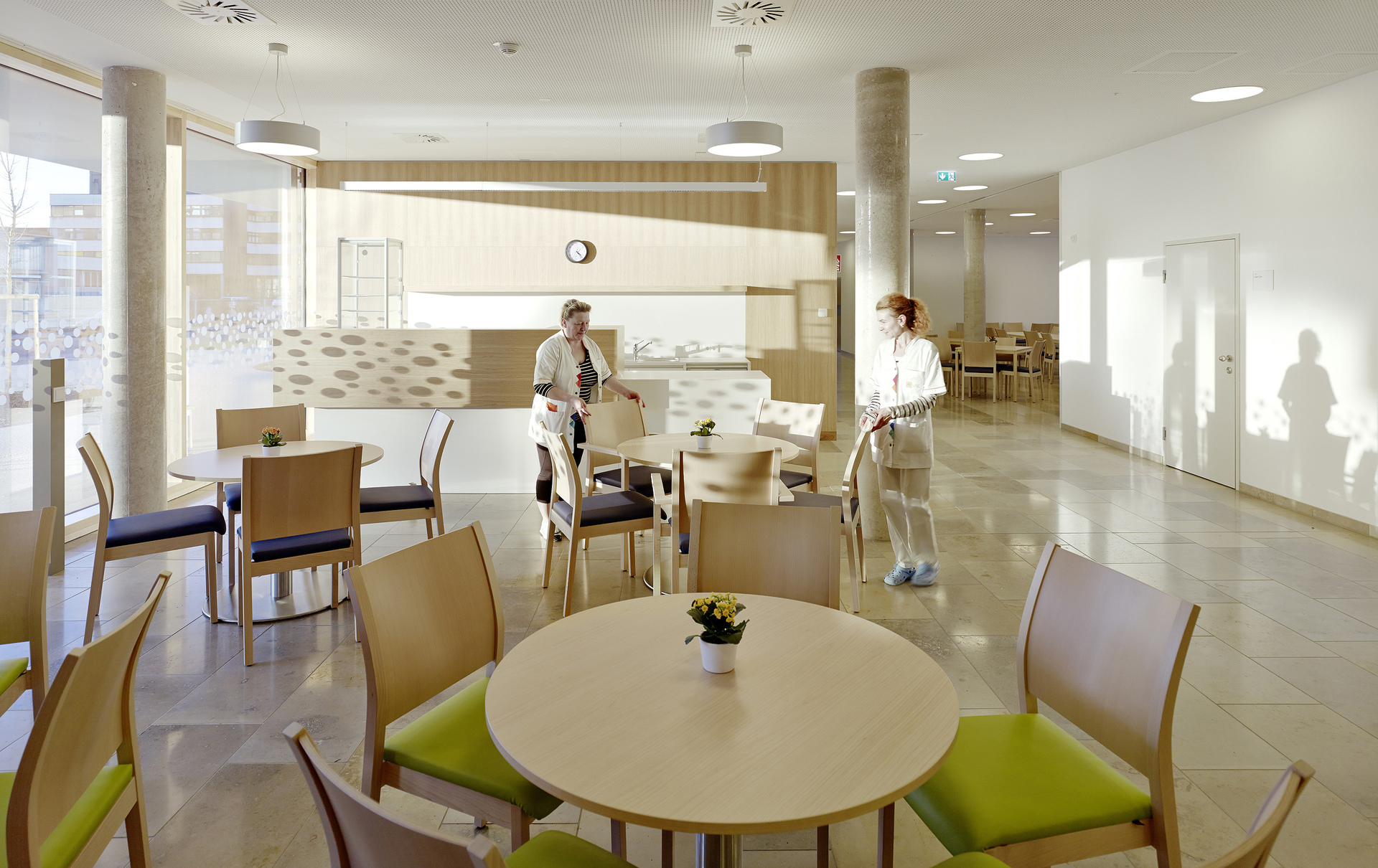 Kuba aber hat mit großem Planungsaufwand dafür gesorgt, dass haustechnische Einrichtungen wie etwa die Lüftungsanlage in diesem höchst energieeffizient angelegten Gebäude im Hintergrund bleiben und kein Feuerlöscher die Harmonie der Aufenthaltsbereiche stört. Und dennoch: Im Seniorenzentrum Liebigstraße finden ausschließlich Menschen mit hoher Pflegebedürftigkeit Aufnahme. Die Frequenz ist diesem Umstand entsprechend deprimierend hoch. Das allerdings ist ein Aspekt der Bauaufgabe, den auch hervorragende Architektur nicht lösen kann