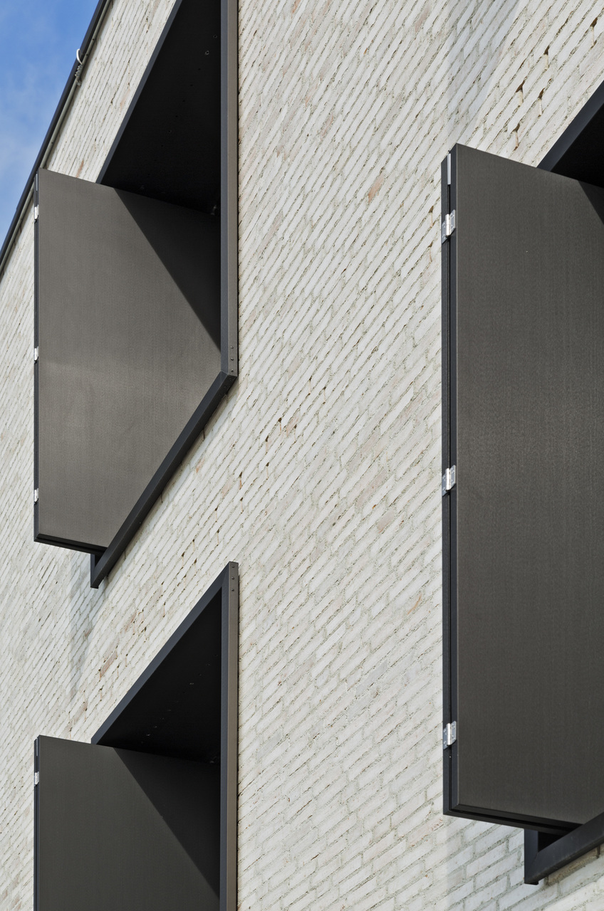 Der in Massivbauweise mit Ziegeln errichtete Baukörper besitzt eine helle Klinkerfassade im „Wilden Verband“. Tiefe Fensteröffnungen sind regelmäßig angeordnet in die Fassade eingeschnitten und betonen dadurch die ein Gefühl von Sicherheit gebende Massivität des Gebäudes. Sämtliche im Innenausbau verwendete Materialien wie Marmor- und Eichenböden, Steinzeug oder Naturstein, sowie die Einbaumöbel aus Eichenholz sind von hoher Qualität und schaffen ein unaufgeregtes, solides Gebäude. (Text: Julia Ess)
