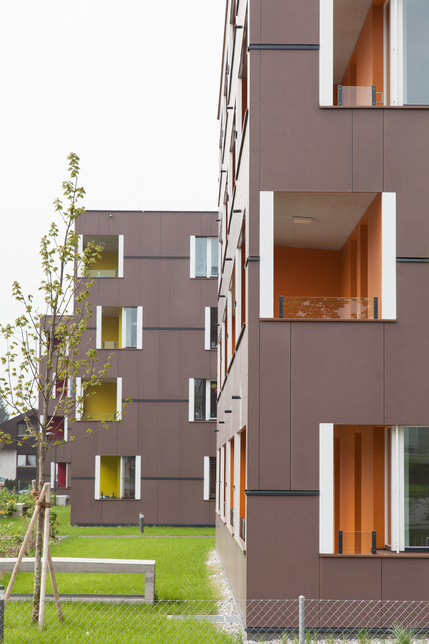 Der Entwurf für die Wohnanlage Höchsterstraße wurde auf Basis der Ergebnisse dieser Studie erstellt. Dabei wurde zusätzlich ein Grünraumkonzept erarbeitet, welches einen öffentlichen Fuß- und Radweg zur Anbindung der südlich des Grundstückes gelegenen Quartiere mit der Höchsterstraße beinhaltet. Die seit 2007 bestehende, über die Vorarlberger Wohnbauförderung definierte Verpflichtung, gemeinnützigen Wohnbau in Passivhausstandard zu errichten, war der entscheidende Punkt für die architektonische Gestaltung der kompakten Baukörper und für die Entwicklung eines effizienten Energiekonzeptes.