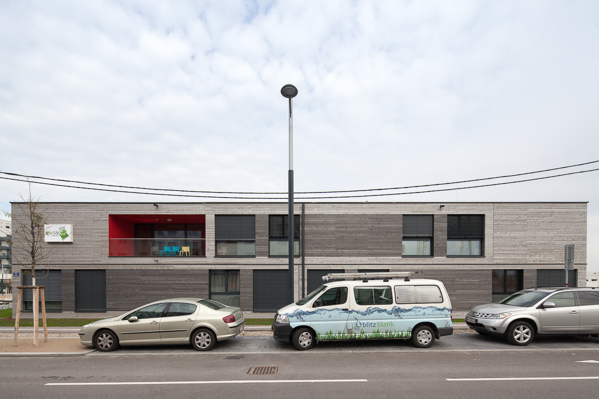 Das wirklich Ungewöhnliche an diesem Ort ist aber nicht der räudige Überseecontainer, sondern sein Rundherum: Benoîts Wohnadresse nämlich hat ein Ablaufdatum. In drei Jahren soll das modular aufgebaute Heim abgebaut und an anderer Stelle wieder aufgebaut werden. Jede einzelne Studenten-WG lässt sich per Kran auf einen Tieflader verfrachten und kann dann von A nach B gerollt werden. Vor einer Woche wurde das mobile Studentenheim, das Erste seiner Art in Österreich, im Beisein der Projektpartner feierlich eröffnet.