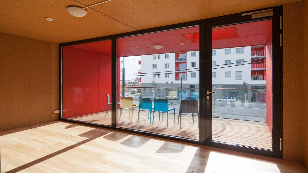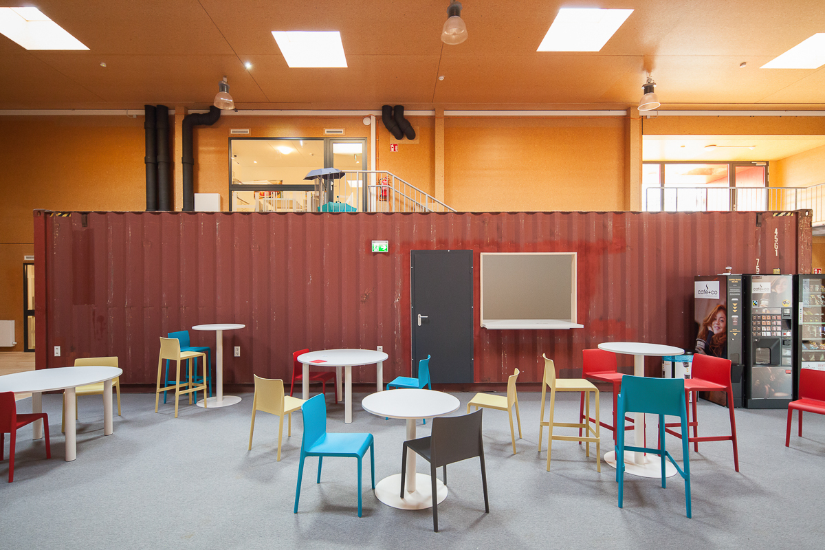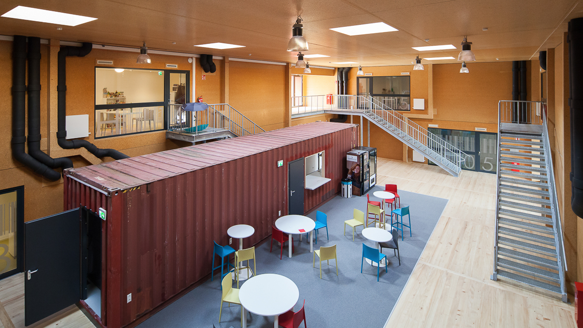 Benoît kommt aus Lyon und studiert Material Sciences an der TU Wien. Vor ein paar Wochen erst ist er eingezogen. Er ist einer von insgesamt 86 Studierenden, die im Studentenheim Pop-up Dorms in der Seestadt Aspern im Nordosten Wiens wohnen. Wie die meisten seiner Wohnkollegen sitzt auch er abends an einem der runden Tische in der großen Halle, im atmosphärischen Schlagschatten des ausrangierten 40-Fuß-Containers, und büffelt aus seinen Skripten.