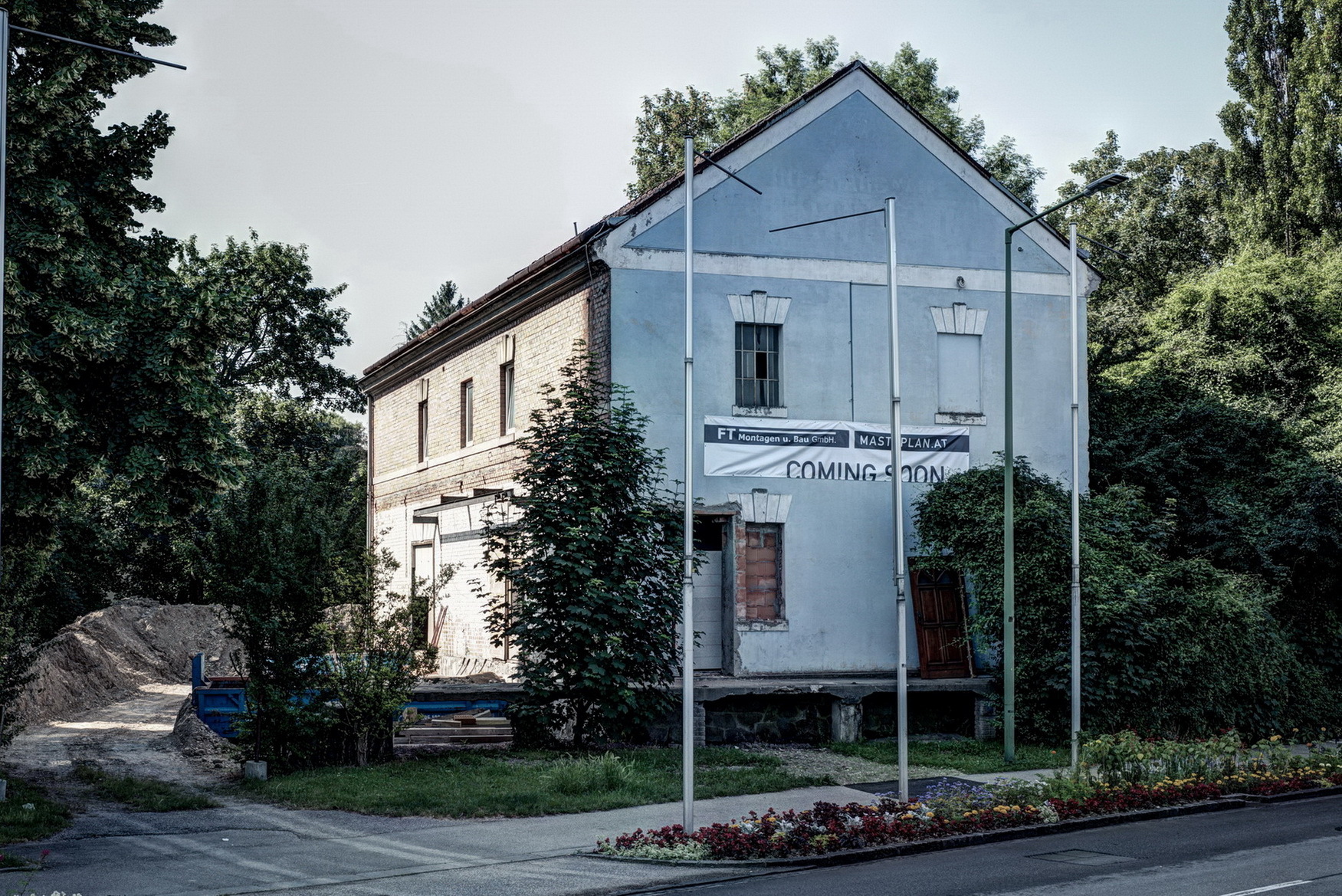 Da das Gebäude für die ehemalige Bahnanbindung um ein halbes Geschoss über das Niveau gesetzt wurde, war der erste entwurfsentscheidende Gedanke den vorderen sowie den rückwärtigen Bereich in einen begrünten Hügel einzubetten. Einerseits um den Höhenunterschied zum Eingangsniveau zu überwinden und andererseits die Höhe bzw. Proportionen des Gebäudes neu zu definieren.