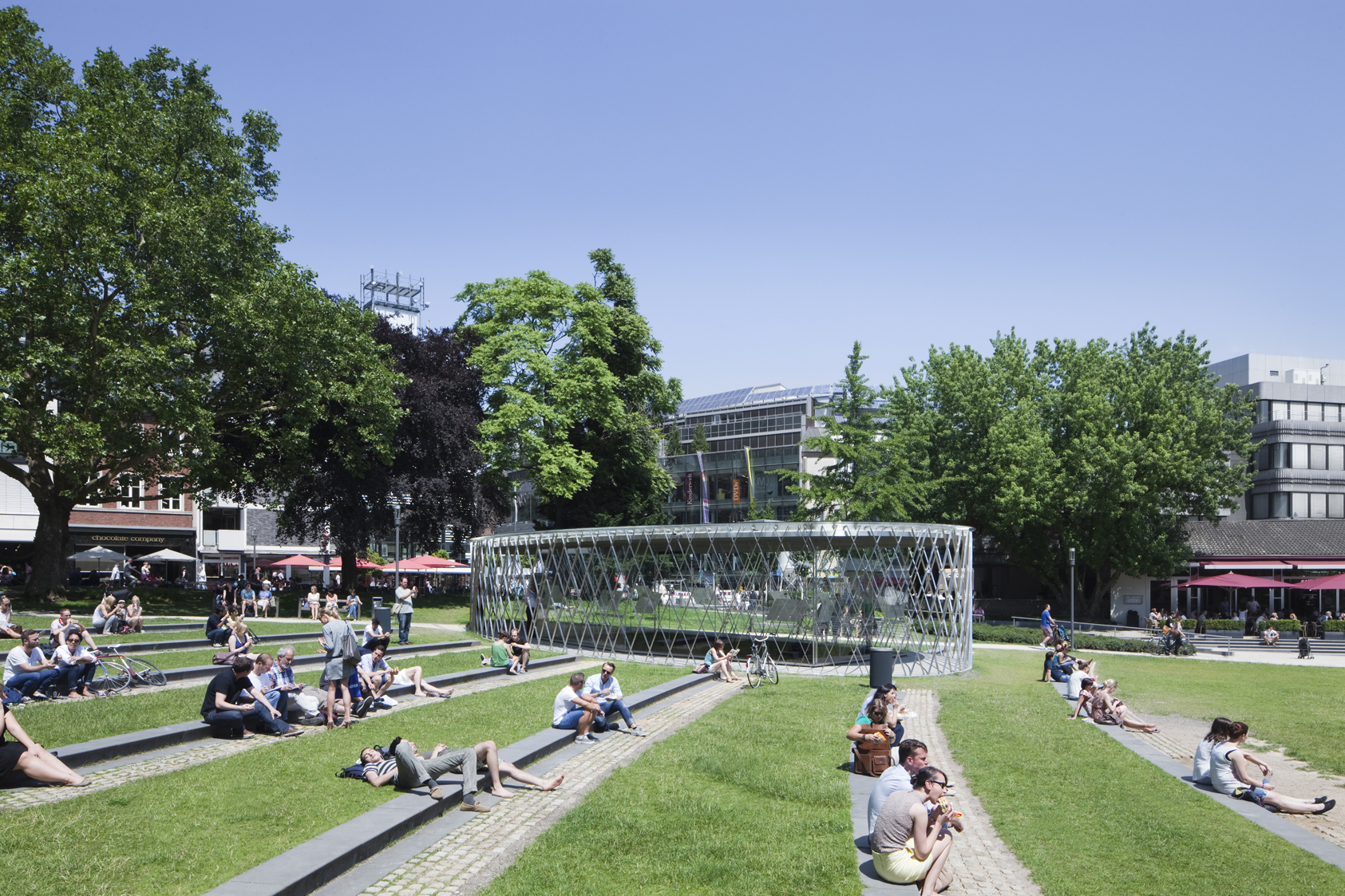 Der Pavillon macht die historischen Wurzeln Aachens als gezielte bauliche Intervention im städtischen Raum sichtbar. Er fügt sich als ergänzender Baustein in die Reihe der Archäologischen Fenster und bildet eine weitere Station der „Route Charlemagne“, die auf den Spuren Karls des Großen zu den historisch bedeutenden Orten der Stadt führt. (Text: Architekten)