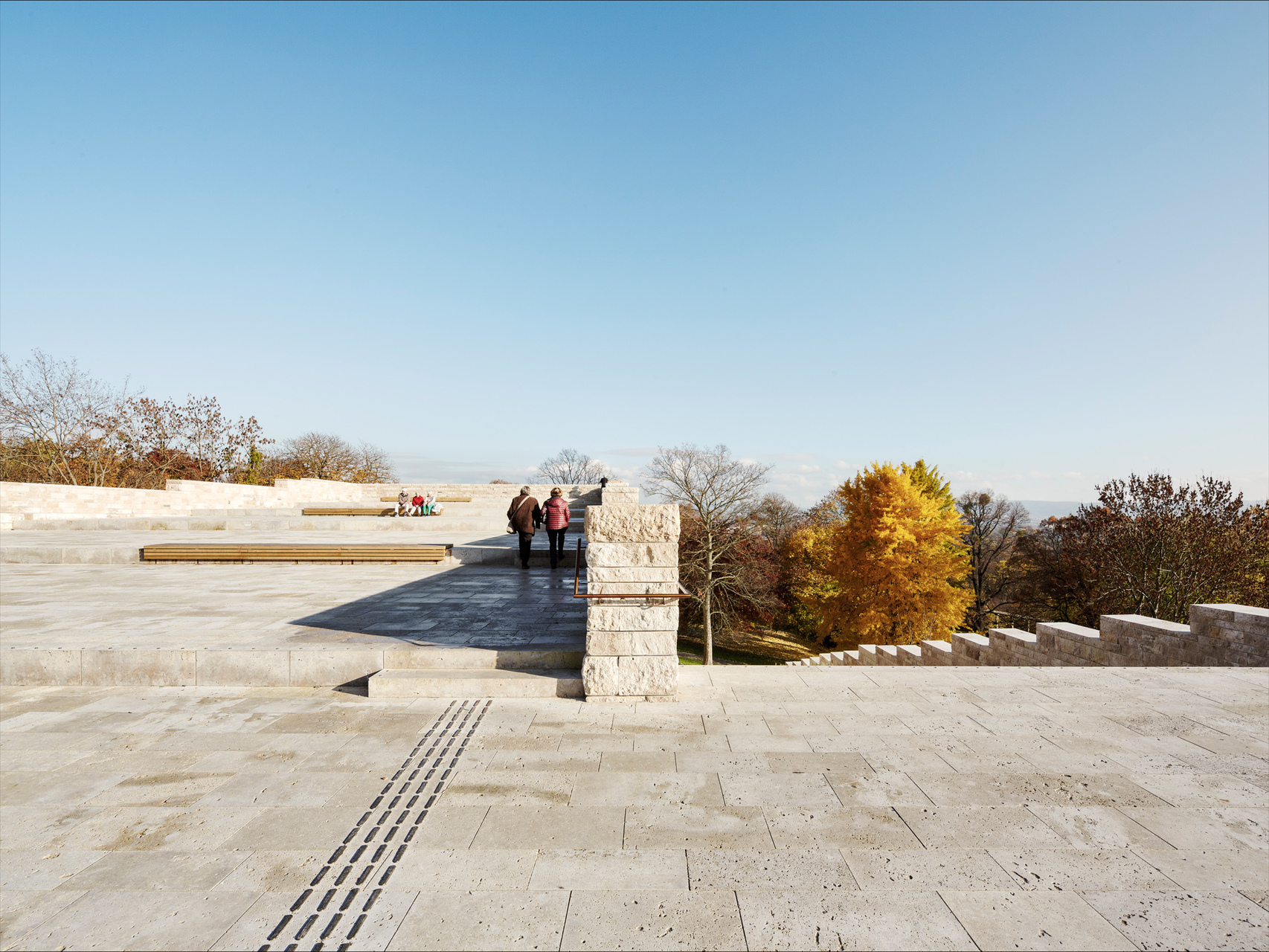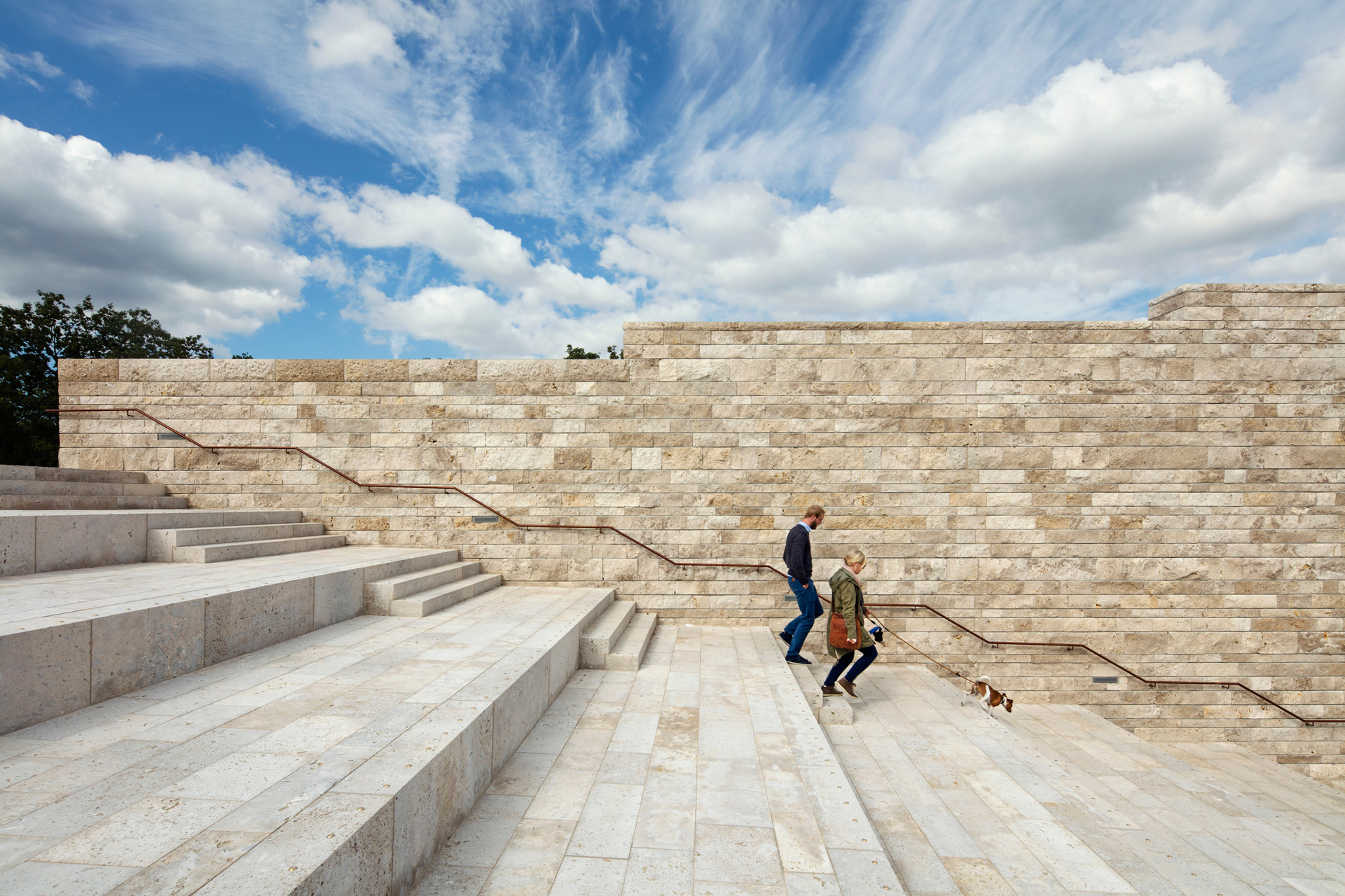 Betont wird die Zugehörigkeit durch die weitgehend geschlossene Bruchsteinhülle, die abgetreppte Kubatur und eine Funktionalität, die über das bloße Einhausen eines Inhalts weit hinausgeht: Als öffentlich zugängliche Treppenanlage, die ihren Abschluss in der Aussichtsterrasse auf dem Dach findet, gehört das Gebäude gewissermaßen schon zur Ausstellungsarchitektur, führt es den Besuchern doch die Landschaft vor Augen, in der die Brüder einmal zu Hause waren.