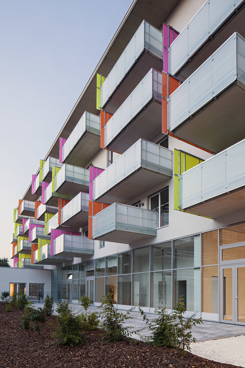 Der Wohnungsmix des Glanhof 1 besteht aus Wohnungen mit Kindern, Alleinerziehende, Singles und ältere Menschen. Das Projekt wurde zusammen mit dem Hilfswerk Kärnten konzipiert und entspricht den Anforderungen der älteren Generation und bindet gleichzeitig jüngere Menschen ein. Im ersten Bauabschnitt entstanden 16 Einheiten mit je 50 m² für betreutes Wohnen, die mit einem 24h Notrufsystem ausgestattet sind. Sie sind durch einen bettenfähigen Aufzug mit dem Seniorenzentrum und dem Gemeinschaftsraum im Erdgeschoss verbunden wo sich ein Generationstreff befindet. (Text: Architekten)