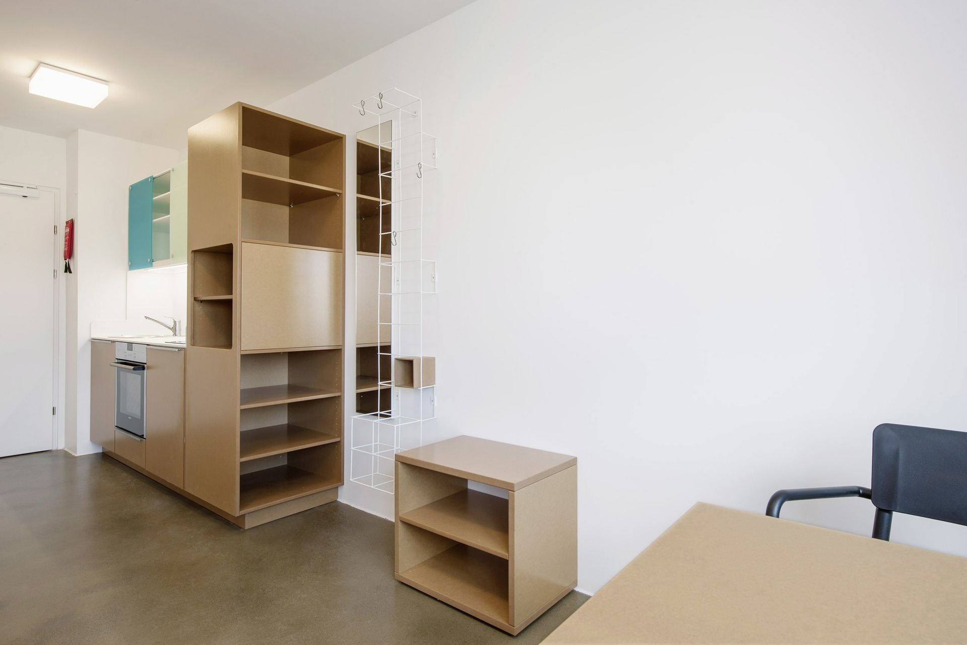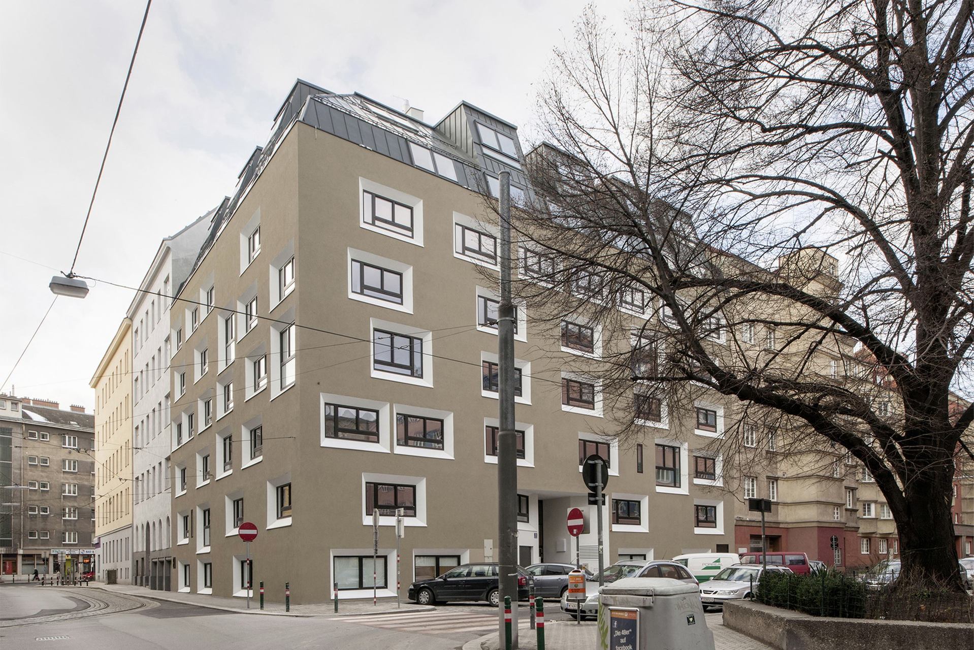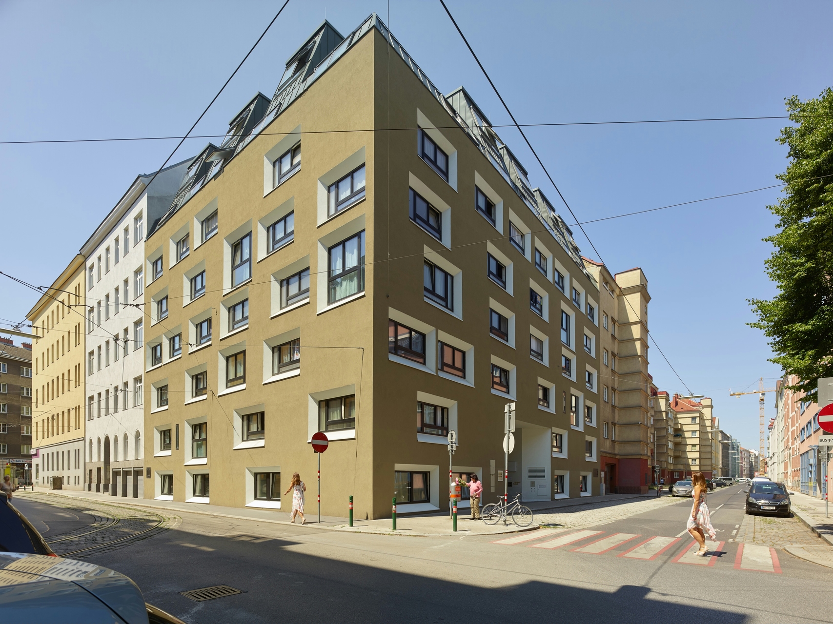 Die Wiener Hilfsorganisation „neunerhaus“ hat es sich zur Aufgabe gemacht, obdachlosen Menschen durch Hilfe zur Selbsthilfe ein selbstbestimmtes und menschenwürdiges Leben zu ermöglichen. Das jüngste Haus des Vereines in der Hagenmüllergasse ist ein Übergangswohnhaus für Männer, Frauen und Paare und ein sozial betreutes Wohnhaus für Menschen mit einer Behinderung nach dem Wiener Chancengleichheitsgesetz.Auf einem Eckgrundstück innerhalb einer gründerzeitlichen Bebauungsstruktur gelegen, wurden auf sieben Geschossen 79 Wohneinheiten und eine Arztpraxis geschaffen, die dank einer ambitionierten Gestaltung alles andere als gestapelte Serienprodukte sind. Ein ausgeklügeltes und räumlich verschachtelte Erschließungssystem, das vom abgesenkten Innenhof mit angelagerter Cafeteria wie eine vertikale, geschossweise versetzte, Promenade nach oben führt, bietet zahlreiche Gelegenheiten zu zwangloser Begegnung und Rückzug außerhalb der individuellen vier Wände an. Für die Kleinstwohnungen wurden passgenaue Möbel entworfen.