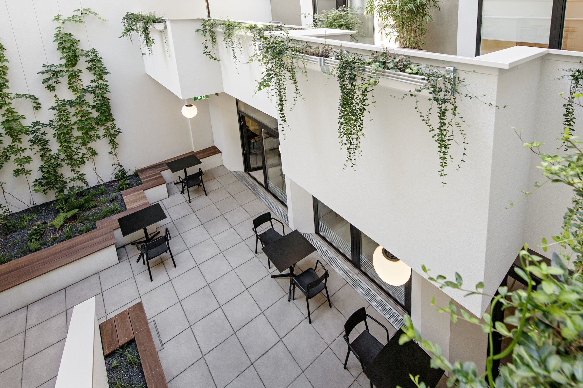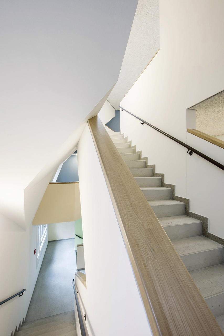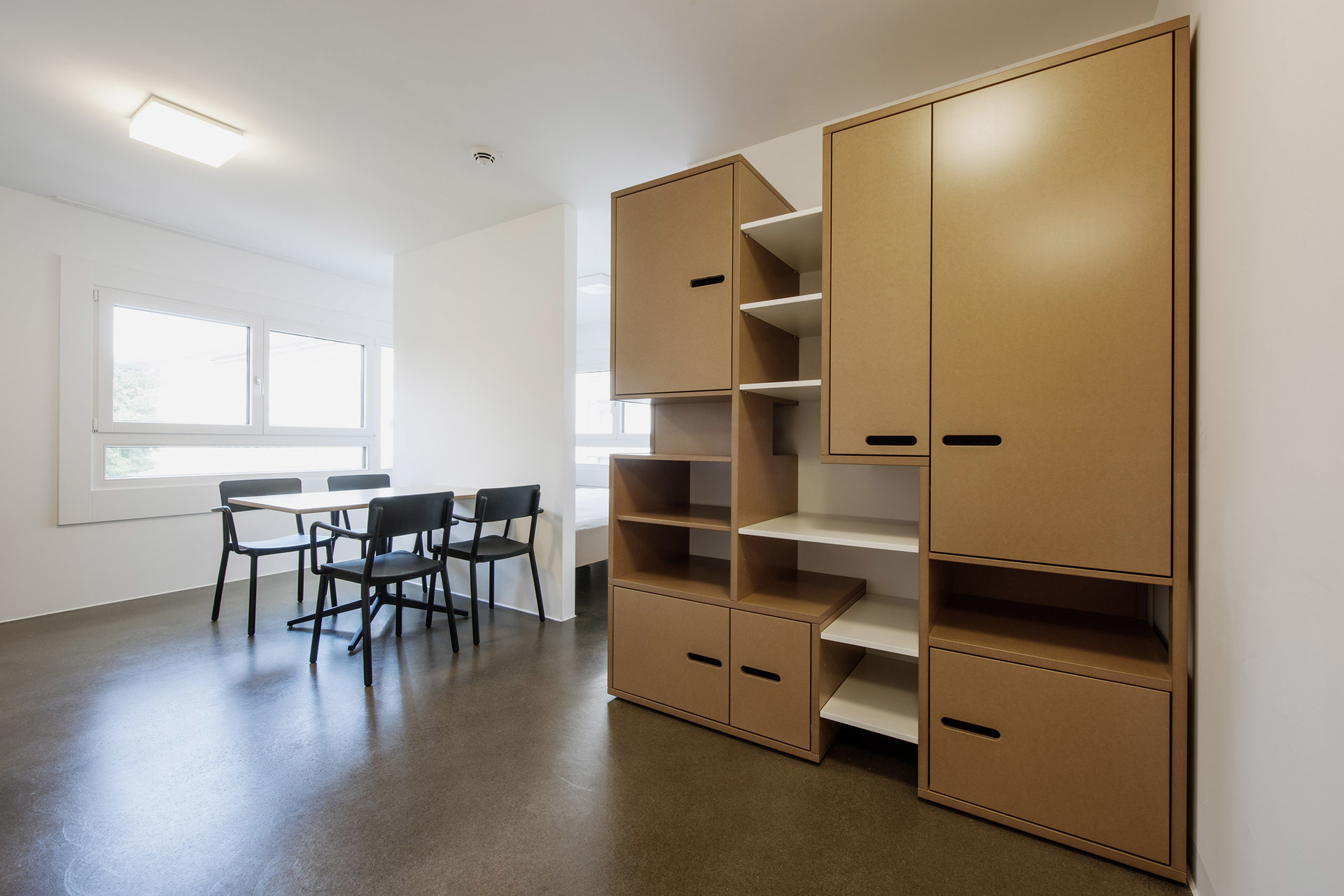 Die Wiener Hilfsorganisation „neunerhaus“ hat es sich zur Aufgabe gemacht, obdachlosen Menschen durch Hilfe zur Selbsthilfe ein selbstbestimmtes und menschenwürdiges Leben zu ermöglichen. Das jüngste Haus des Vereines in der Hagenmüllergasse ist ein Übergangswohnhaus für Männer, Frauen und Paare und ein sozial betreutes Wohnhaus für Menschen mit einer Behinderung nach dem Wiener Chancengleichheitsgesetz.Auf einem Eckgrundstück innerhalb einer gründerzeitlichen Bebauungsstruktur gelegen, wurden auf sieben Geschossen 79 Wohneinheiten und eine Arztpraxis geschaffen, die dank einer ambitionierten Gestaltung alles andere als gestapelte Serienprodukte sind. Ein ausgeklügeltes und räumlich verschachtelte Erschließungssystem, das vom abgesenkten Innenhof mit angelagerter Cafeteria wie eine vertikale, geschossweise versetzte, Promenade nach oben führt, bietet zahlreiche Gelegenheiten zu zwangloser Begegnung und Rückzug außerhalb der individuellen vier Wände an. Für die Kleinstwohnungen wurden passgenaue Möbel entworfen.