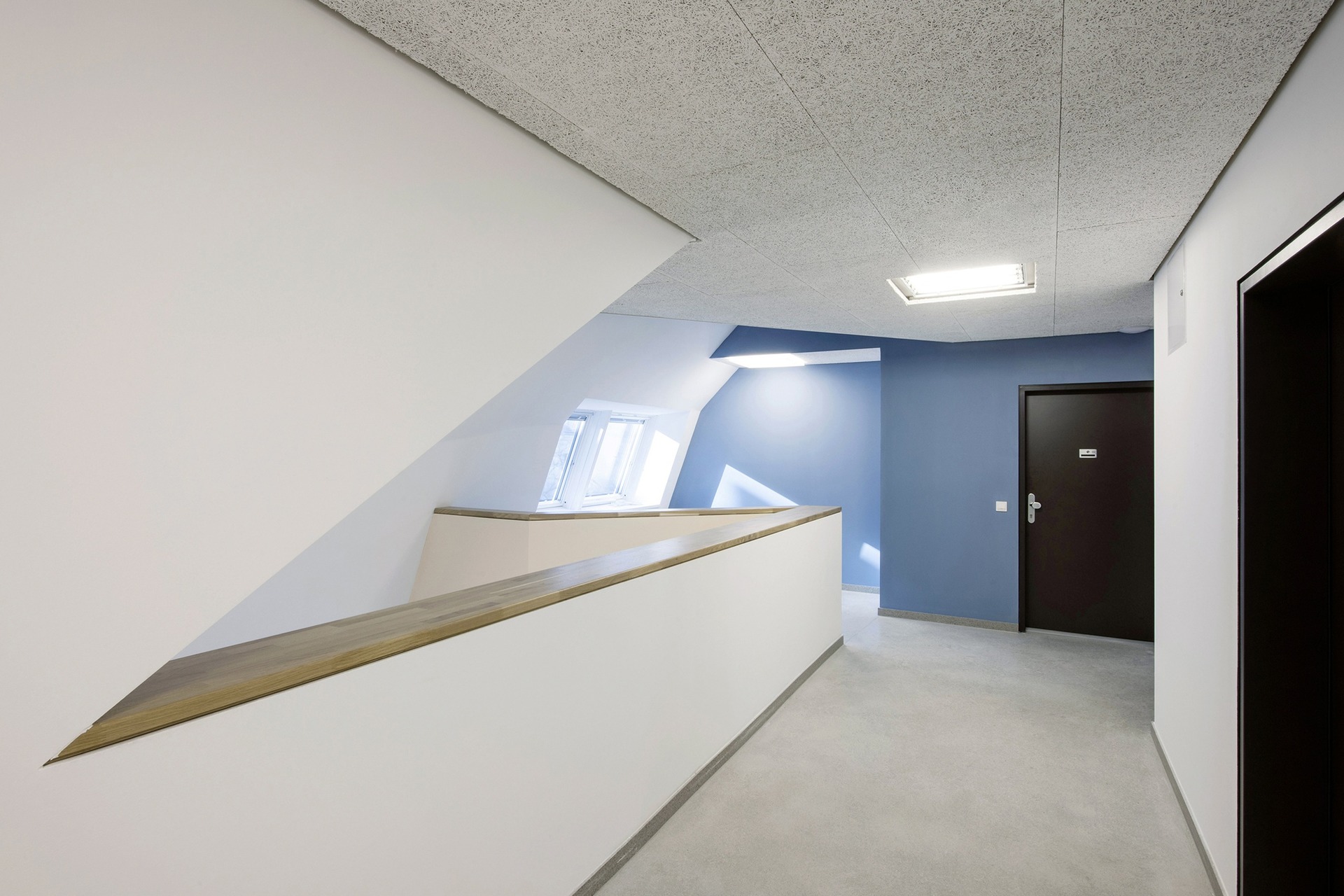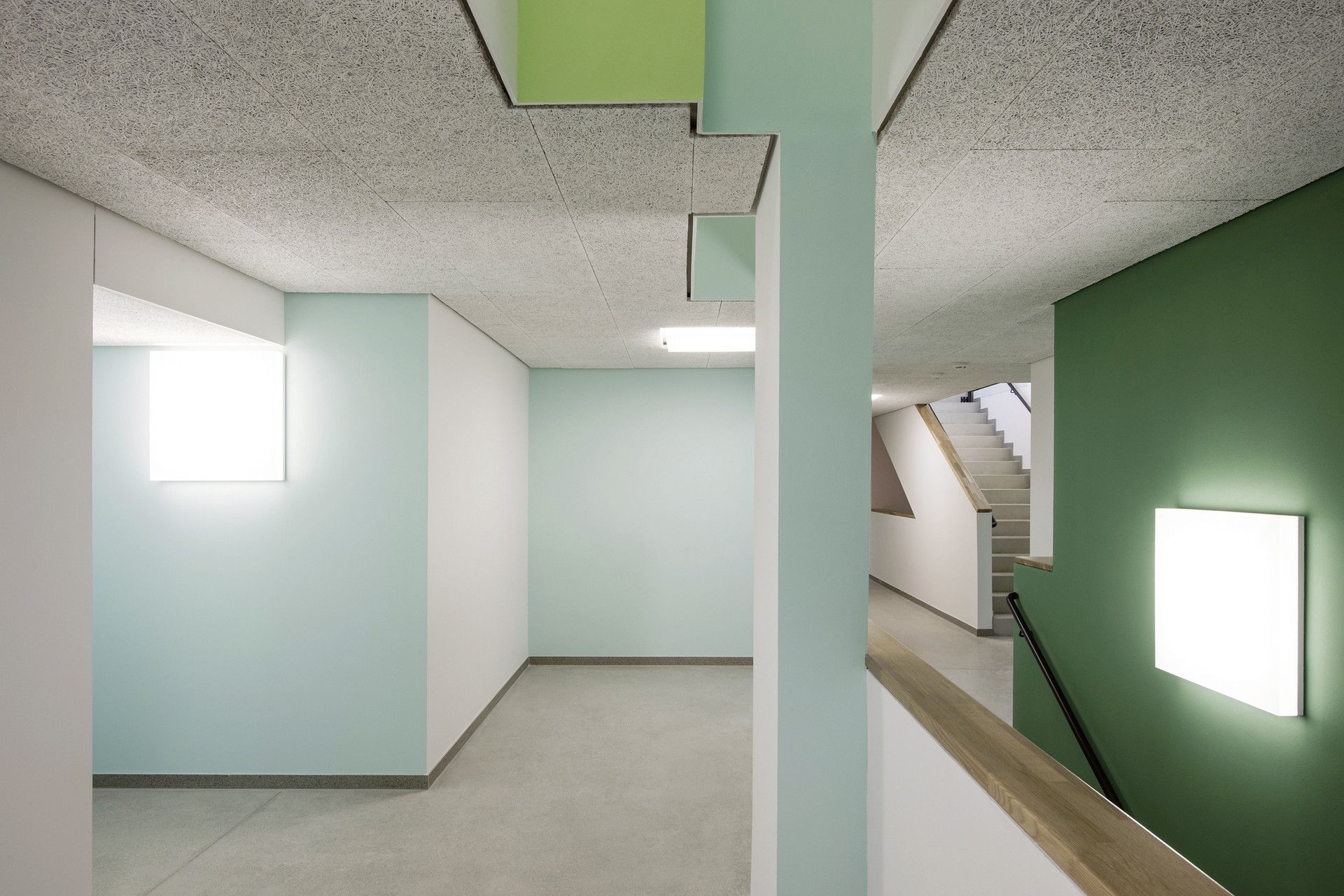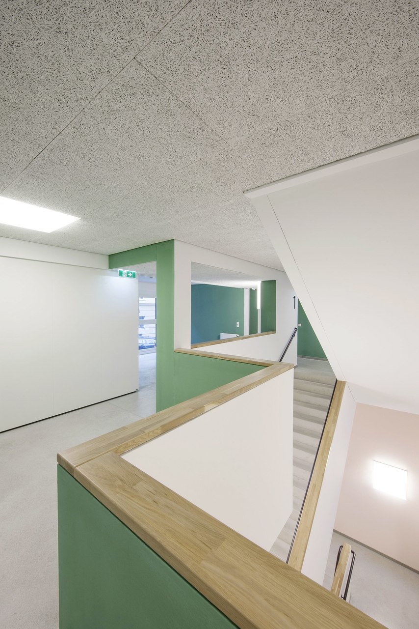 Der Neubau in Passivhausqualität erfüllt alle Anforderungen für sehr guten Innenraumluftkomfort. Er ist HFKW- und PVC-frei errichtet, weist sehr gute Energieverbrauchswerte auf und verfügt ganz selbstverständlich über eine kontrollierte Lüftungsanlage mit Fundamentabsorber zur Außenluftvorwärmung, bzw. -kühlung. (Text: Jury Staatspreis Architektur & Nachhaltigkeit 2017)
