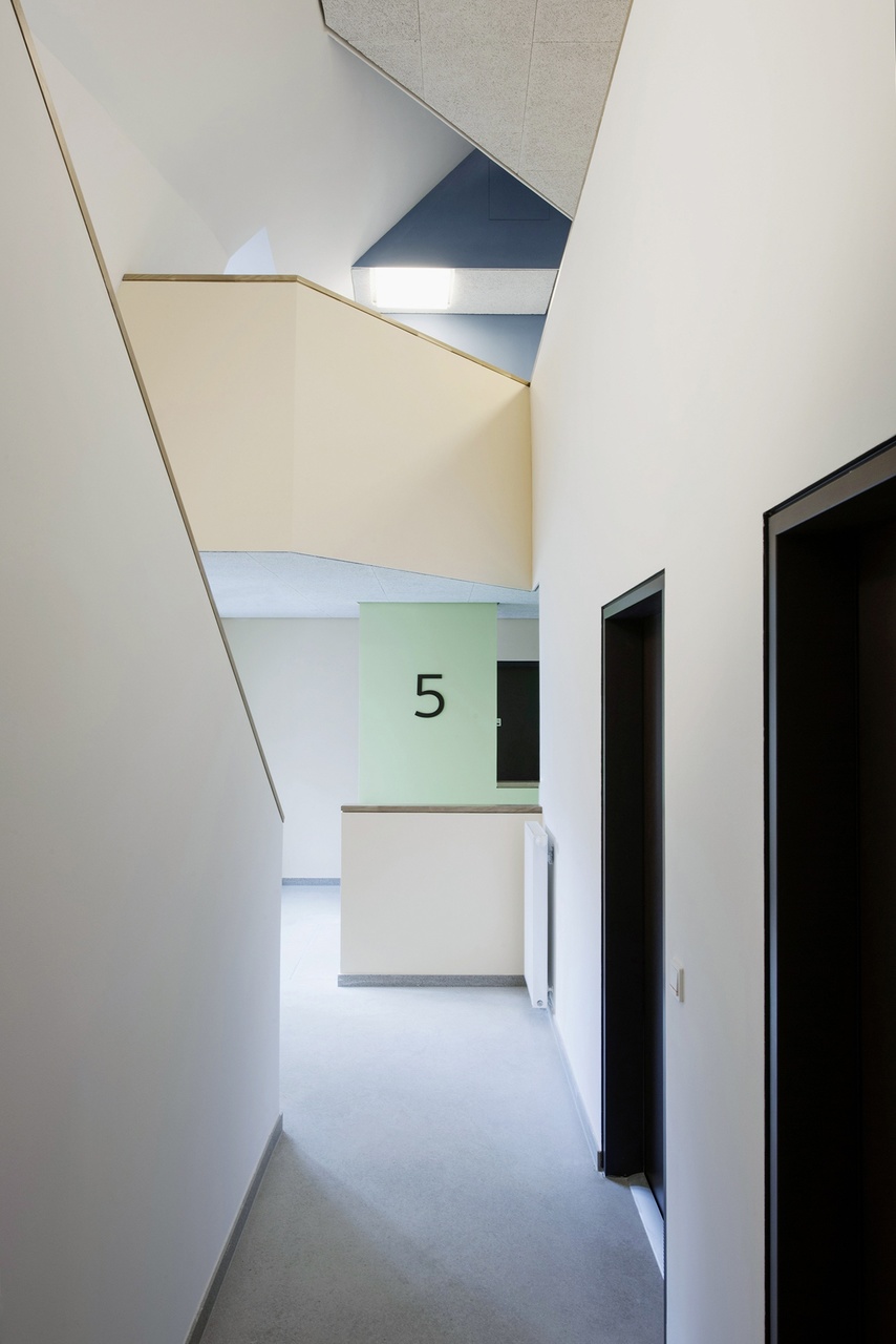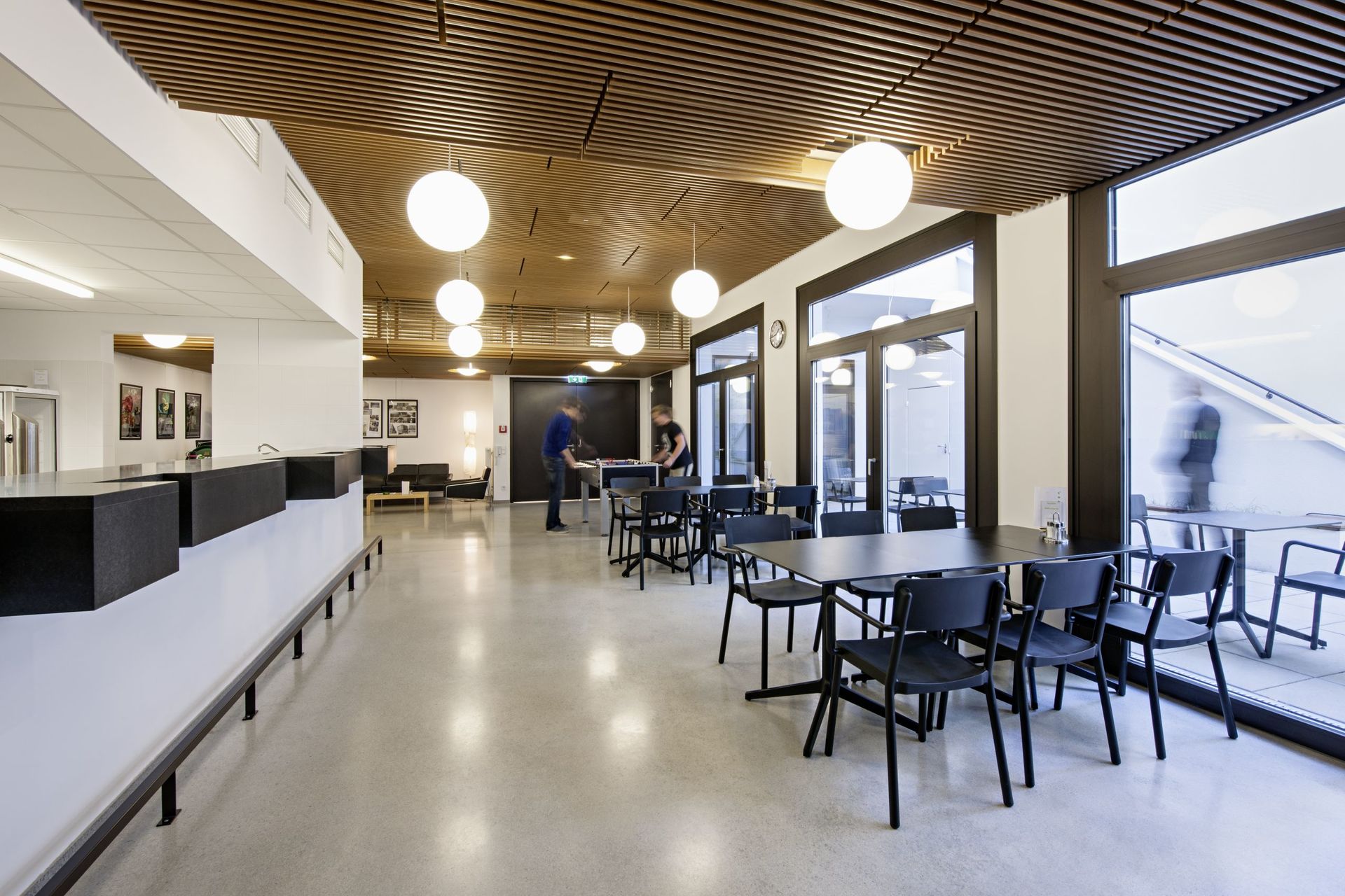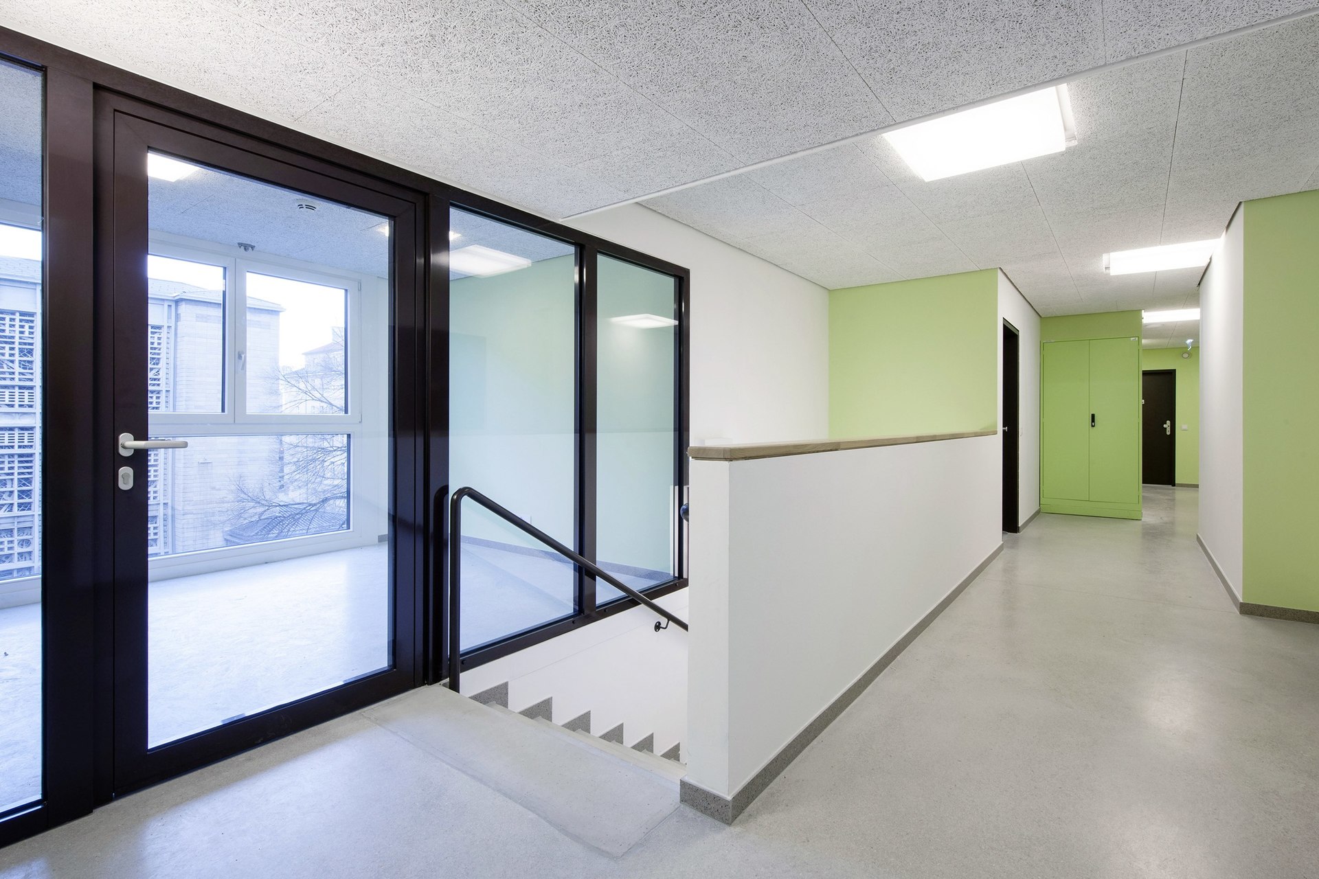 Der Neubau in Passivhausqualität erfüllt alle Anforderungen für sehr guten Innenraumluftkomfort. Er ist HFKW- und PVC-frei errichtet, weist sehr gute Energieverbrauchswerte auf und verfügt ganz selbstverständlich über eine kontrollierte Lüftungsanlage mit Fundamentabsorber zur Außenluftvorwärmung, bzw. -kühlung. (Text: Jury Staatspreis Architektur & Nachhaltigkeit 2017)