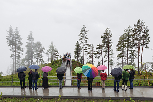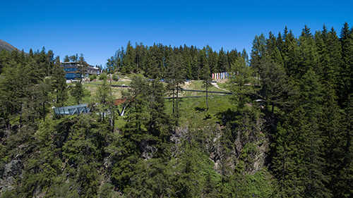 Seit Jahrtausenden war der Piller Sattel ein wichtiger Haltepunkt für Reisende auf ihrem beschwerlichen Weg über die Alpen, wie die zahlreichen Fundstücke in dieser Region belegen. Und auch heute übt der „Gache Blick“ mit seinem faszinierenden Ausblick ins Obere Inntal auf Einheimische und Touristen eine große Anziehungskraft aus. Entsprechend hoch ist das Verkehrsaufkommen und damit verbunden der Bedarf an Parkplätzen. Ein wesentlicher Aspekt in der Neugestaltung bestand darin, durch gezielte Maßnahmen der Renaturierung die Parkflächen samt Fahrzeugen möglichst auszublenden, wobei der volle Umfang dieser Maßnahmen erst über die Jahre mit dem Wachstum der Baum- und Sträuchergruppen erfahrbar sein wird.