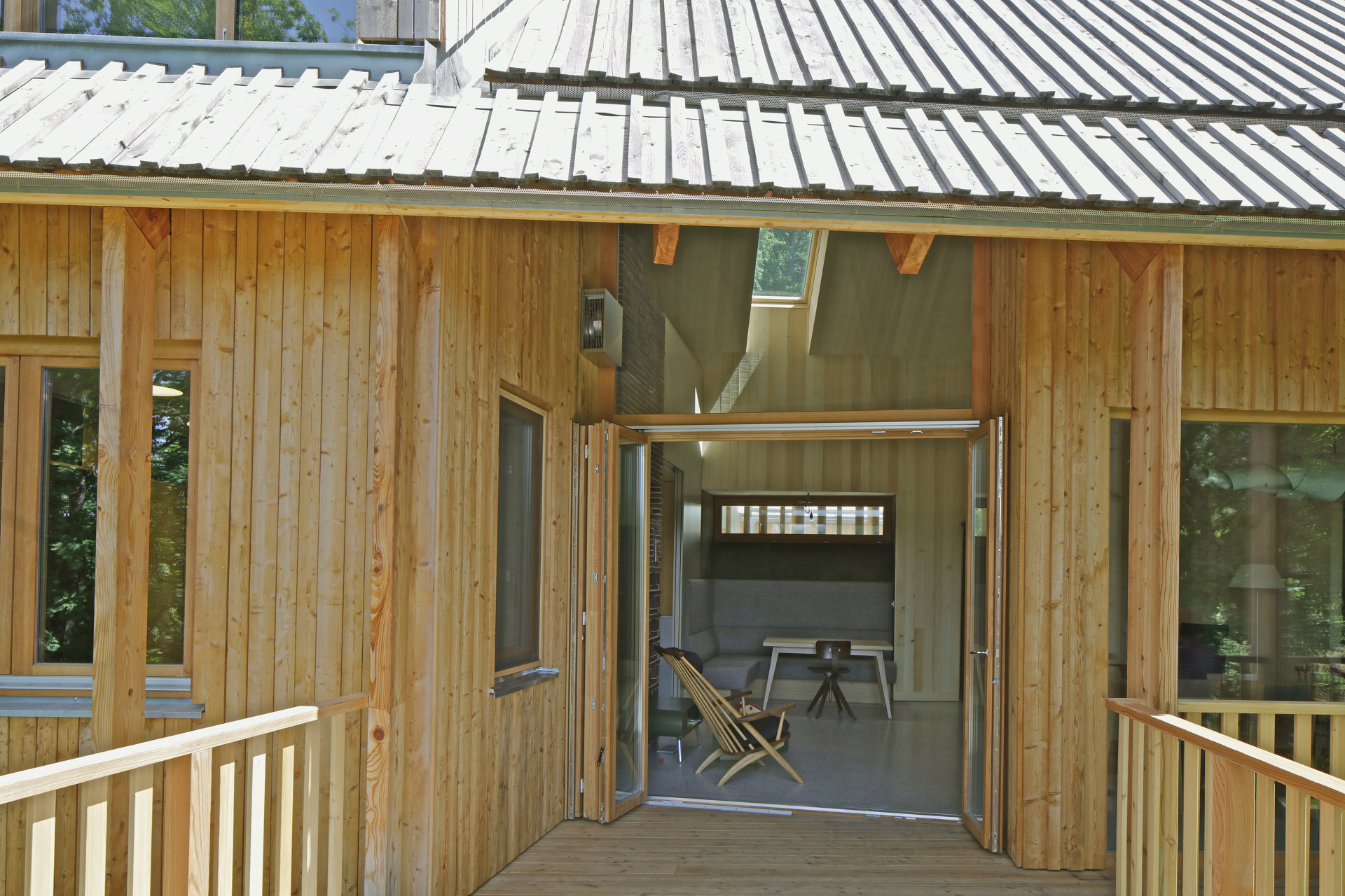Die Holzriegelwände und das Dach sind gedämmt mit Zellulosefasern in einer Stärke von 26 cm.