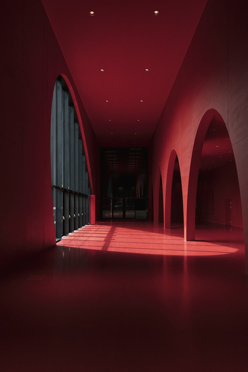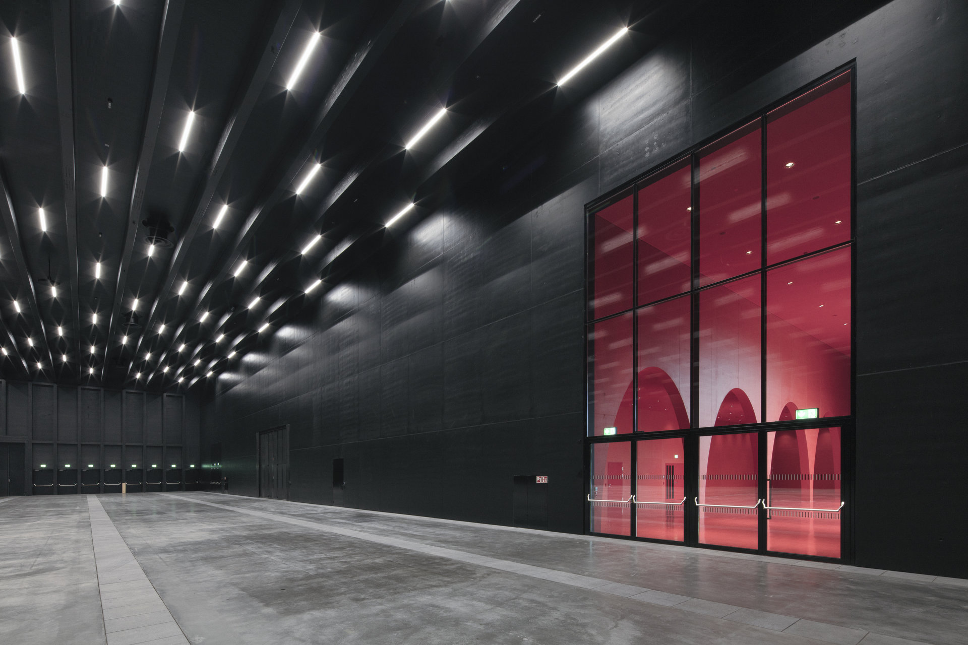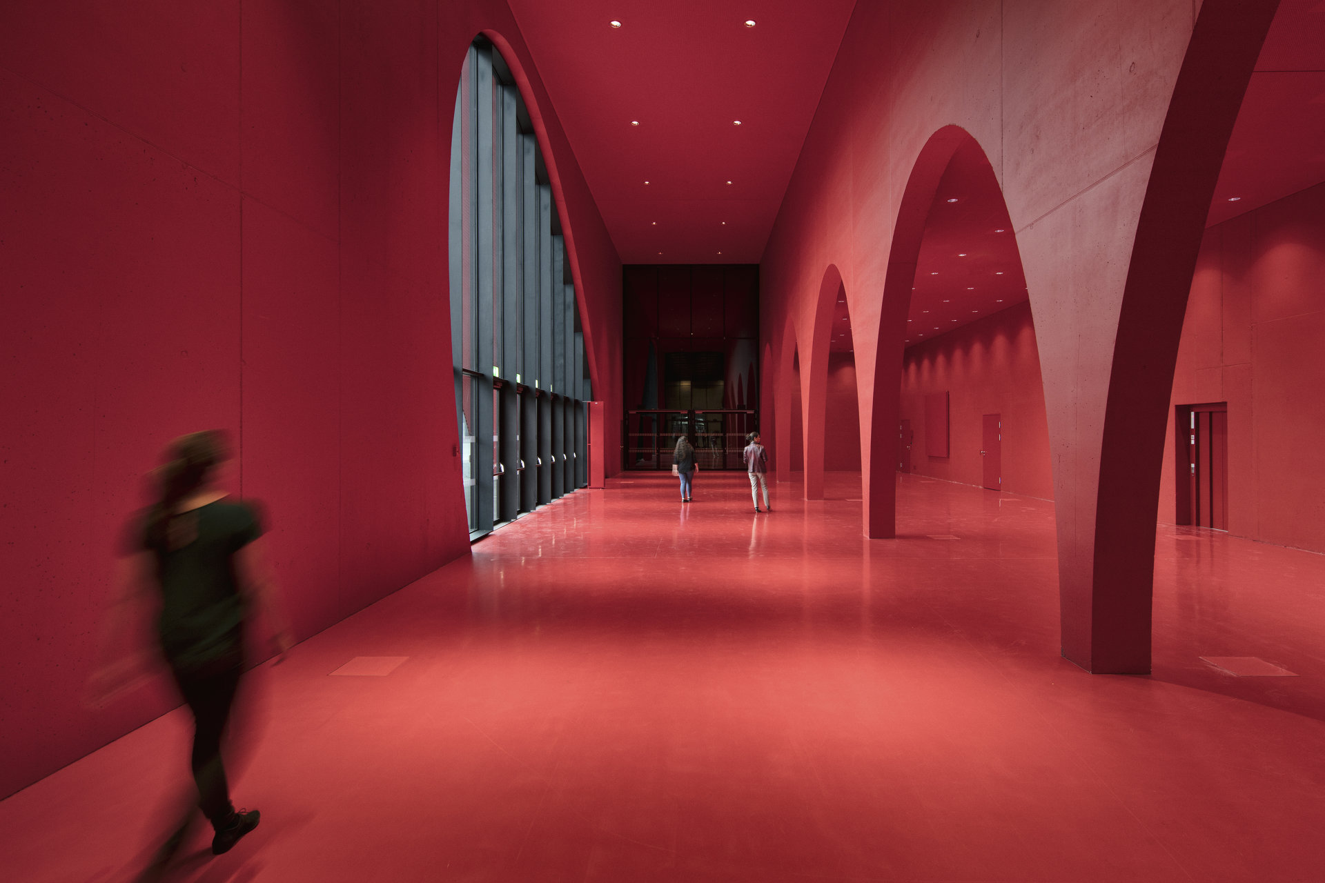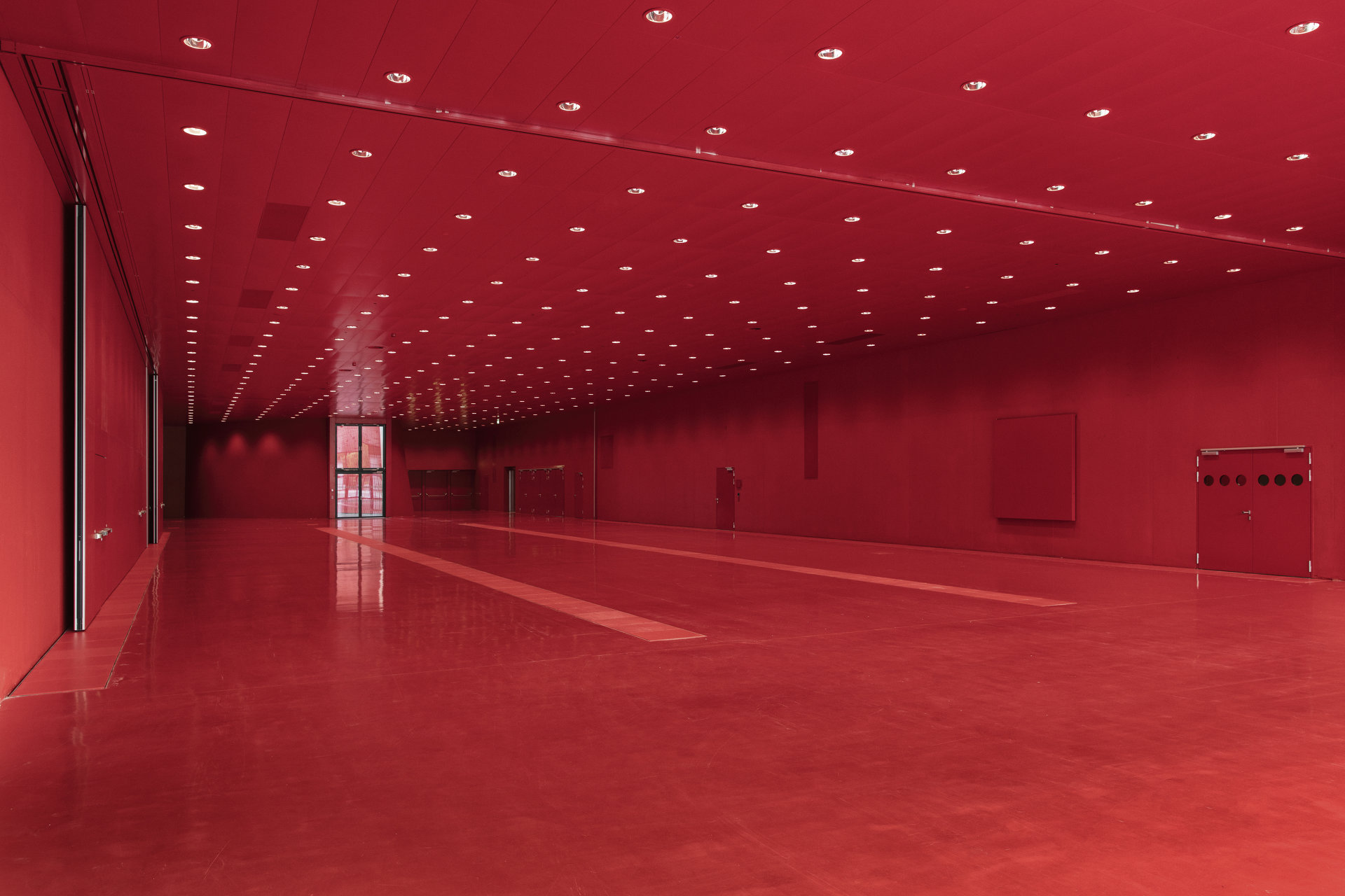 Aufgrund der zumeist unattraktiven und banalen Messehallen Land auf und Land ab, überzeugen diese engagierten und intelligenten Raumhüllen auf Anhieb. Dabei ergeben Länge/Breite/Höhe allerorts das gleiche nutzbare Raumvolumen, darüber hinaus bleibt ein angemessener baukünstlerischer Ansatz, kombiniert mit einem raffinierten statischen Tragwerk, leider die seltene Ausnahme. 65 Leimholz-Fachwerkträger liegen jeweils auf raumhohen Holzstützen auf, deren stringente Abfolge am Ende von Sichtbetonwänden räumlich begrenzt wird. Das bewusste Ausblenden der Fachwerkskonstruktion oberhalb des Untergurts und das farbliche Differenzieren der Struktur verleiht der Halle nicht nur eine elegante Ästhetik, sondern überzeugt durch seine selbstverständliche Logik. (Text: Vorarlberger Holzbaupreis 2017 - Begründung der Jury)
