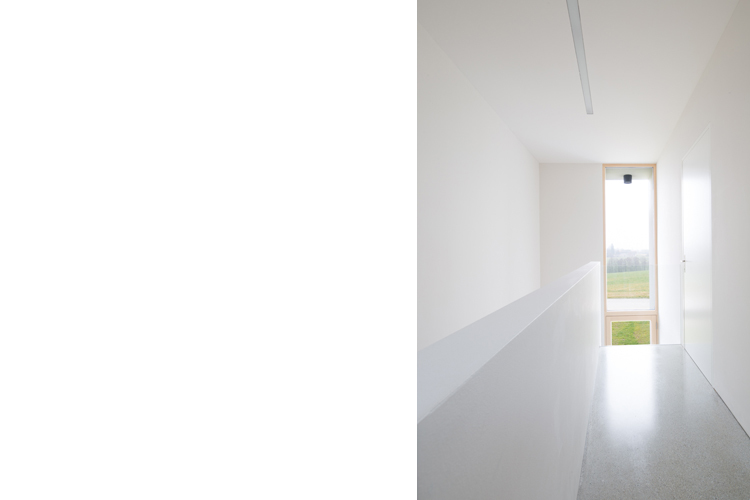 Die den Salon umgebene Raumeinheiten werden als Schlafbereich, Kinderbereich, Wohnbereich und Einliegerwohnung genutzt und zeichnen sich leicht zurückversetzt im Baukörper ab. Der jeweiligen Nutzung entsprechend, sind diese Raumeinheiten mit gerahmten Landschaftsblicken geprägt. Das Dach vereint die Bereiche und bietet durch den jeweiligen Überstand den angemessenen baulichen Witterungsschutz an.