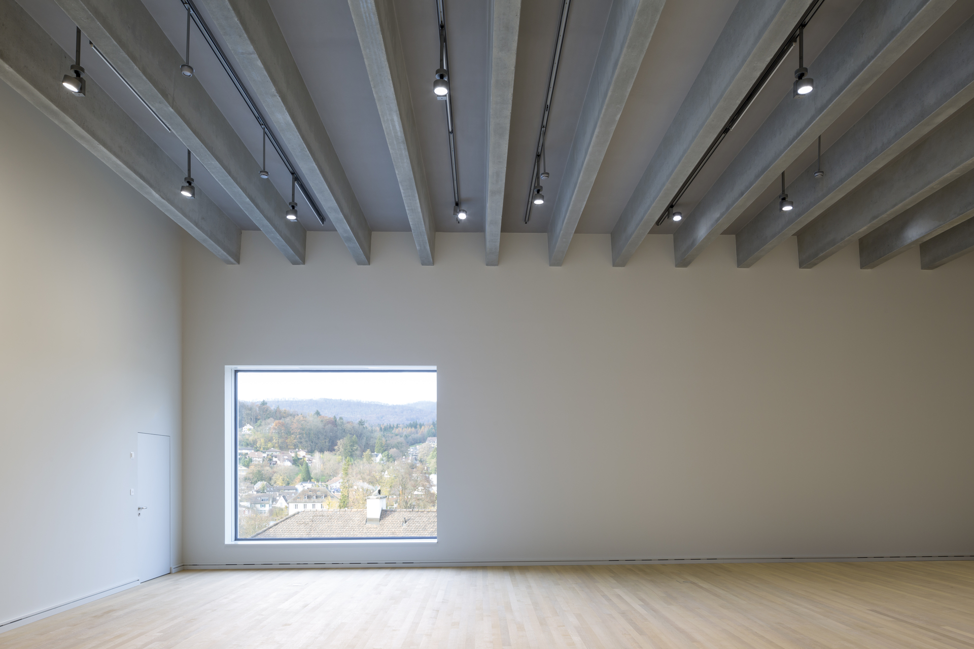 Zusammen mit Diener & Diener aus Basel hatte Architekt Martin Steinmann aus Aarau den eingeladenen Wettbewerb unter den fünf Entwürfen zur Erweiterung des »Schlössli«, eines mittelalterlichen Wohnturms, in dem das Stadtmuseum seit 1938 untergebracht ist, gewonnen. »Wettbewerbe gewinnt man nicht mit Fassaden«, so erläutert Martin Steinmann. Vielmehr hätte das städtebauliche und organisatorische Konzept ihres Entwurfs die Jury überzeugt: Statt, wie in der Ausschreibung vorgesehen den Neubau östlich auf Abstand zum Turm zu positionieren, schlugen sie vor, im Westen unmittelbar an den Bestand anzubauen. Durch die bewusste Neuformulierung der Bauaufgabe ergaben sich gleich mehrere Vorteile. So konnte durch die Verschmelzung von Alt und Neu die Erschließung über die meisten Geschosse zusammengefasst und somit auch im Turm weitgehend barrierefrei gestaltet werden. Zudem ergab sich eine schlüssige städtebauliche Neuausrichtung des Terrains, das vom Rand der Altstadt zum Aaretal hin stark abfällt. Östlich des erweiterten Stadtmuseums kann auch weiterhin der Blick über eine Grünanlage hinweg ins Tal und weiter zum Jura schweifen.