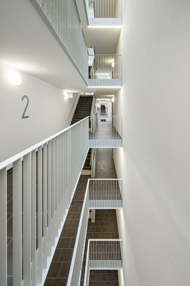 Als Antwort auf diese Anforderungen entwickelten die Architekten zuerst eine baustrukturelle Systematik mit den Nasszellen als frei stehende Kerne, die ein robustes Raumgerüst für alle Wohnungsgattungen bilden kann. Aus dieser Systematik entstanden flexibel nutzbare Grundrisse, die in der Lage sind, einer Vielfalt an unterschiedlichen Wohnbedürfnissen entsprechende Lösungen zu bieten.