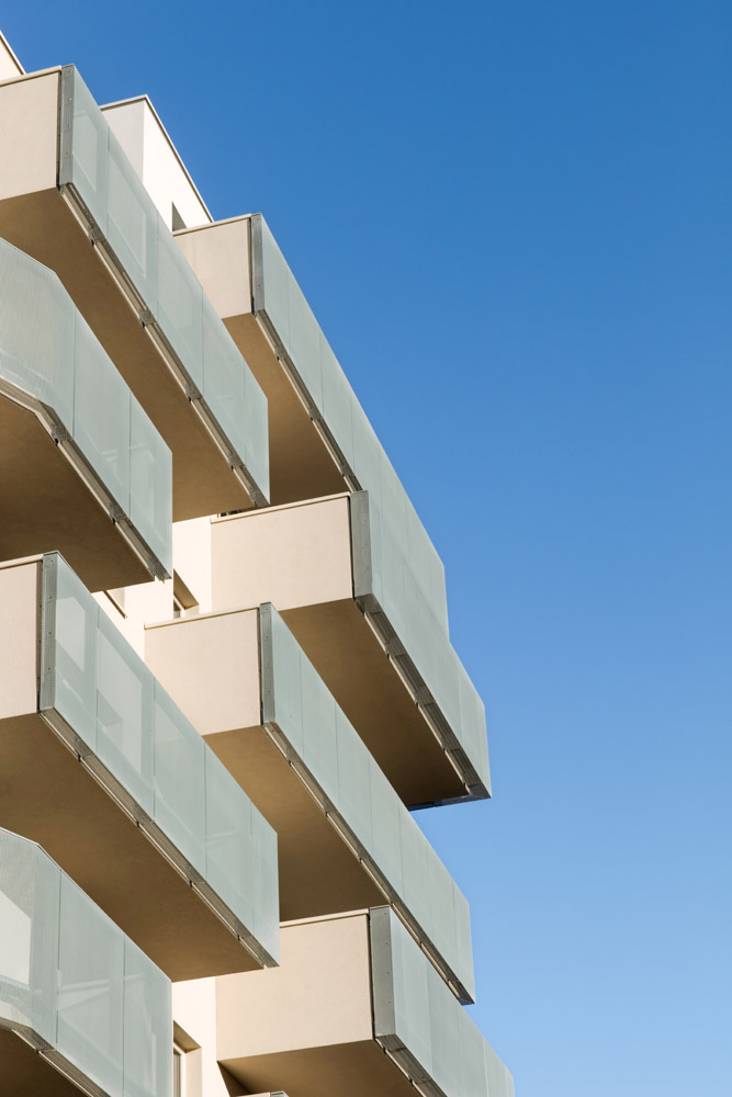 Obgleich das Projekt grundsätzlich von innen nach außen konzipiert wurde, nimmt die Komposition der Baukörper sehr spezifische Bezüge des städtebaulichen Umfelds auf. Die Architektur ist einfach und geradlinig, stellt aber eine raffiniert vernetzte Abfolge von Höfen und Freiräumen her und bildet die Grundlage für eine feingliedrige Bauplastik mit einem sehr lebendigen Erscheinungsbild. (Text: Architekten)