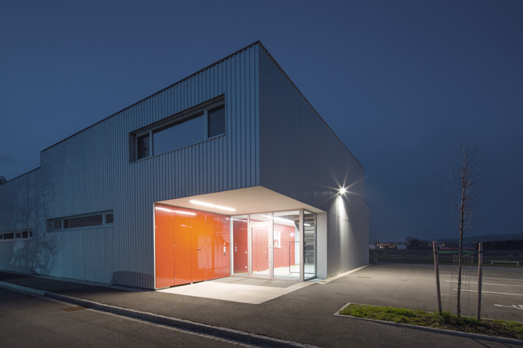 Das Gebäudevolumen folgt sparsam dem inneren Raumbedarf und garantiert damit höchste Effizienz bei Flächen- und Kubaturverbrauch. Somit können Flächenreserven im Süden des Grundstückes vorgehalten werden, die auch eine externe Verwertung möglich machen.