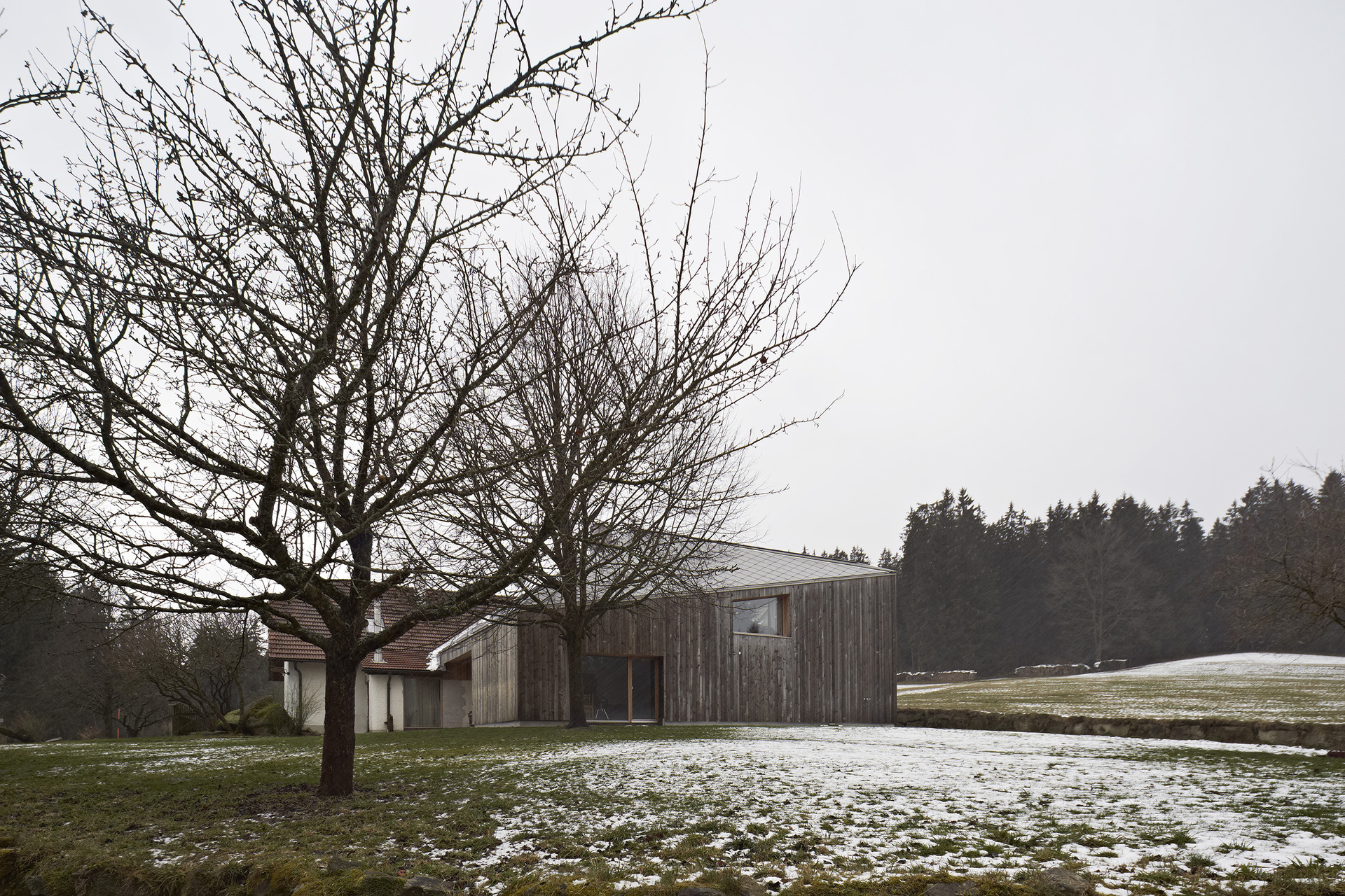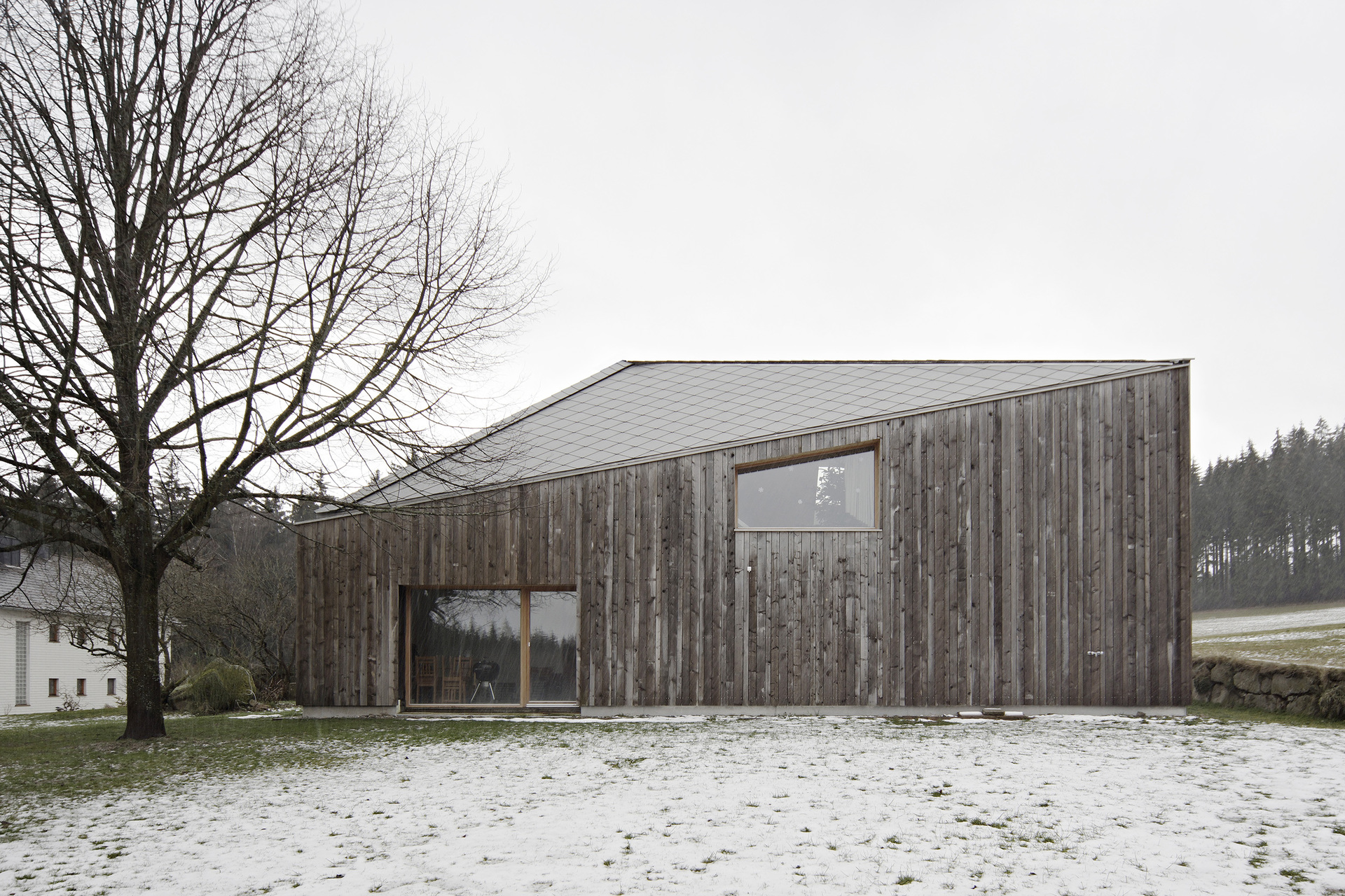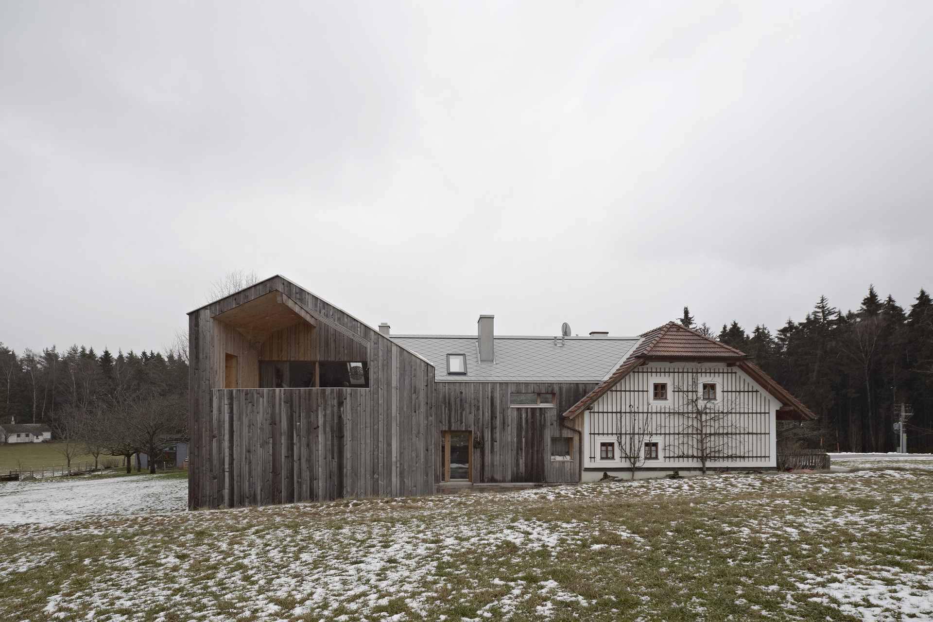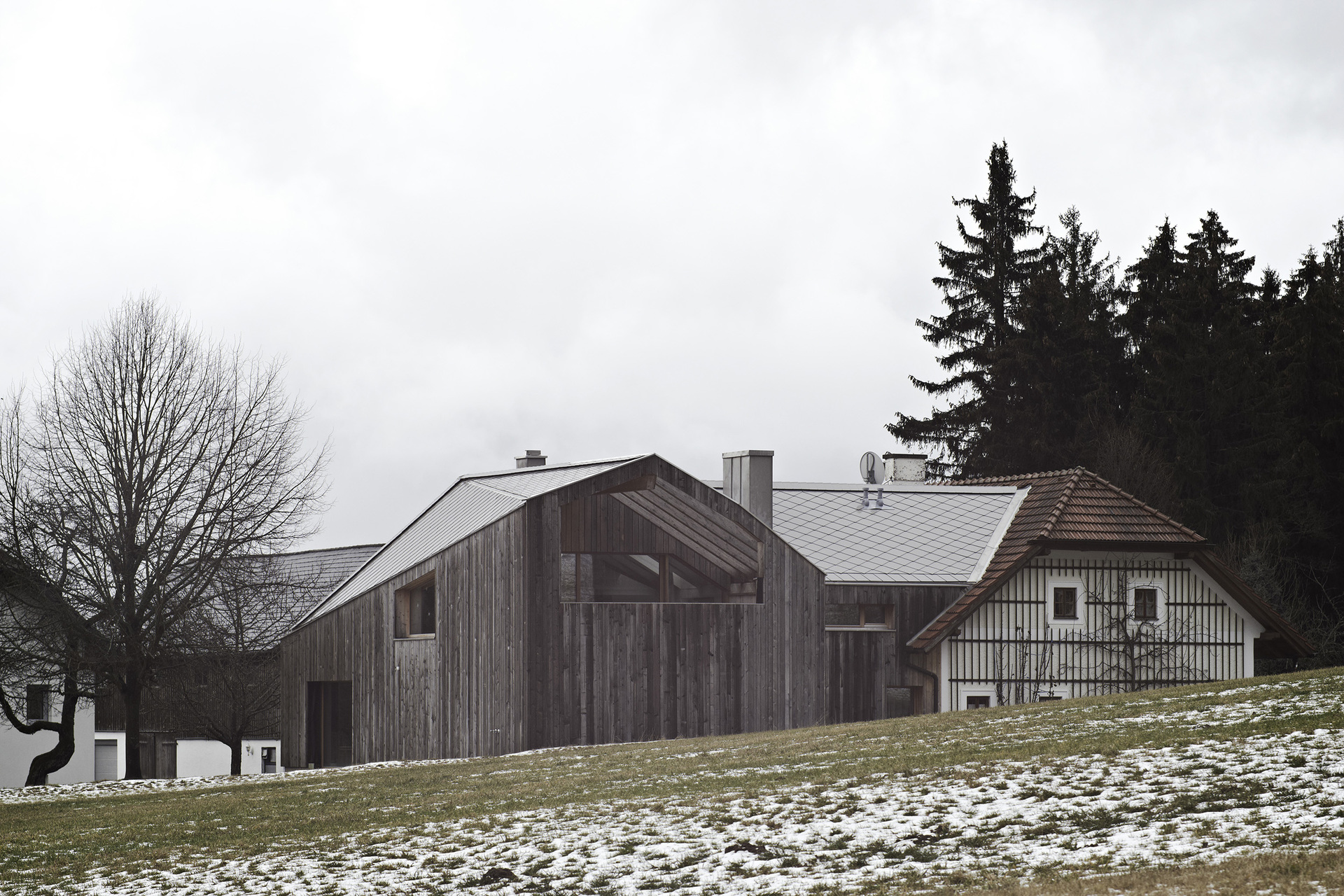 Das für das Mühlviertel typische Bauernsacherl mit seiner einfachen rechteckigen Geometrie wurde erhalten, die Anbauten teilweise abgebrochen bzw. adaptiert. Durch die einheitliche Fassadengestaltung der Zubauten mit sägerauher Fichte wird das Bestandsgebäude besser als Altbestand lesbar und somit gestalterisch freigestellt. Die sägerauhe Holzfassade nimmt Bezug auf die regionstypische Gestaltung der Wirtschaftsgebäude. Durch die gefaltete Dachform mit seiner schräg verlaufenden Traufe orientiert sich der Zubau an den Höhen des Altbestandes. (Text: Architekten)