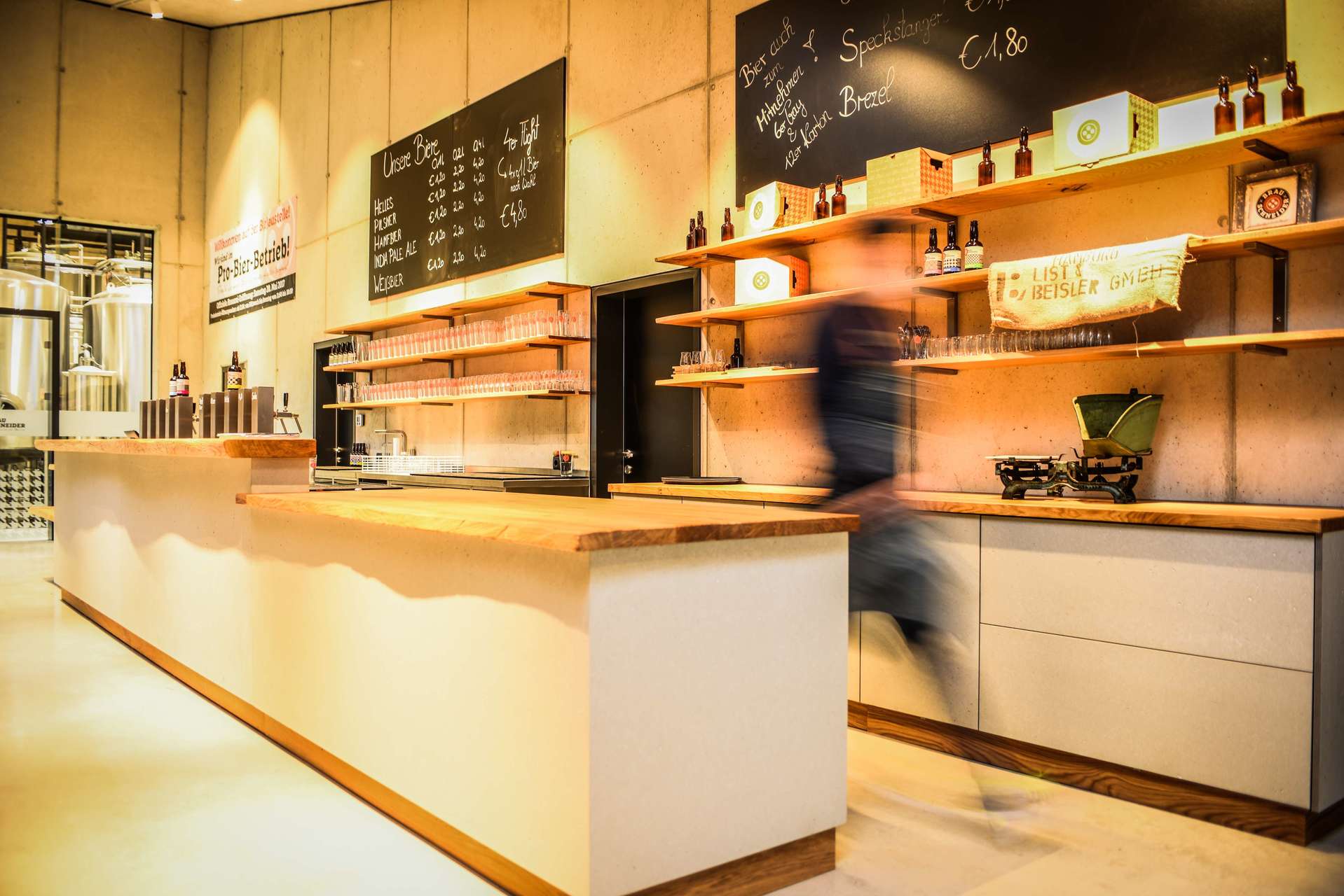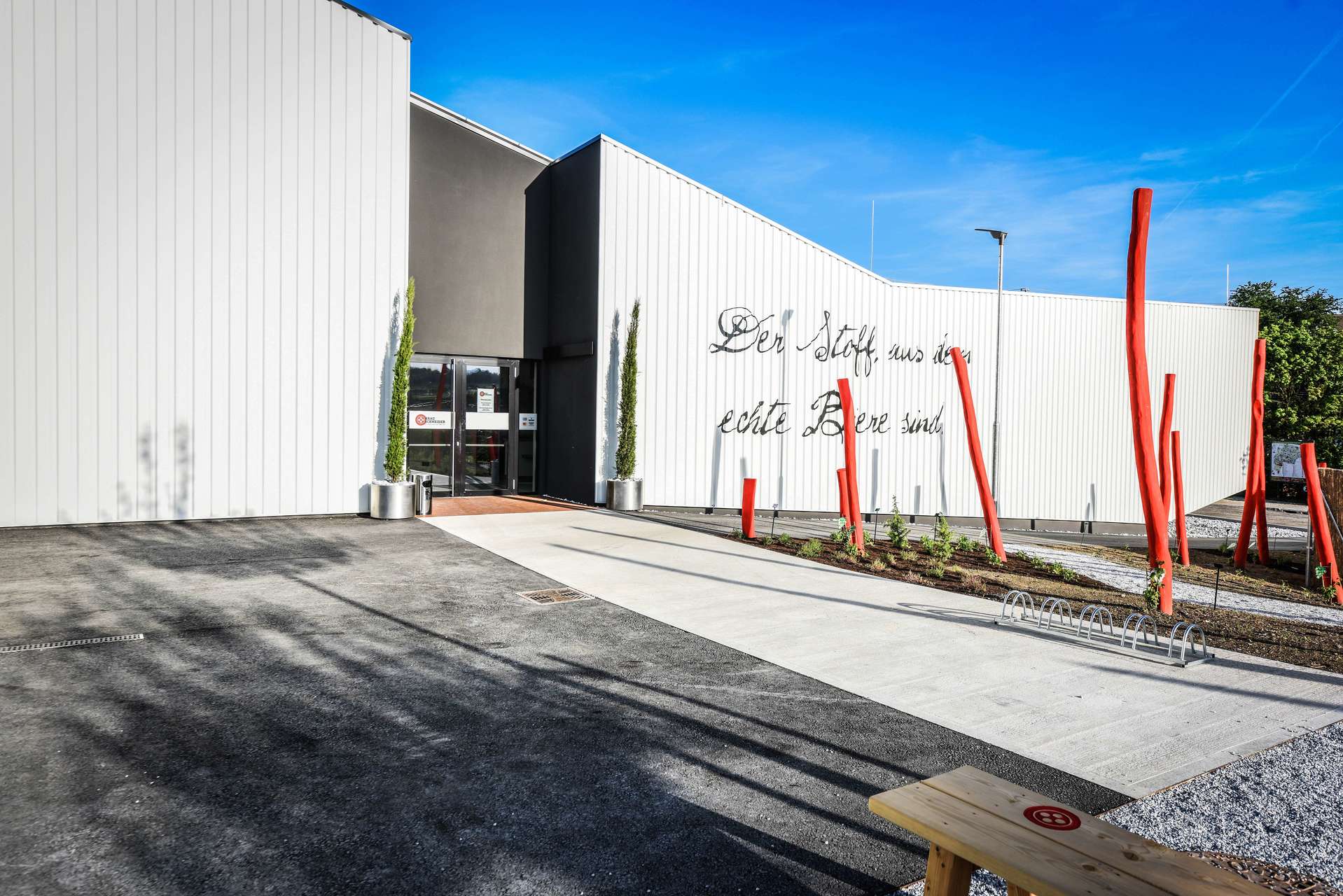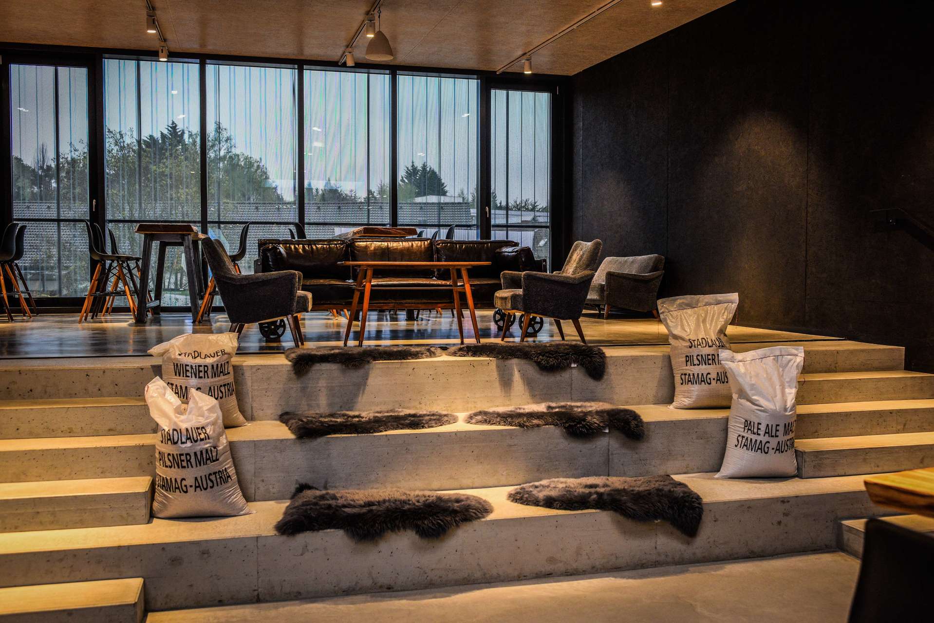 Auf der Primärkonstruktion aus Betonstützen wird ein Holzbau (Dach, Wände) gestülpt, was im Inneren spürbar ist. Der monolithische Betonboden bleibt wie er ist, wird nur geschliffen und birgt die Fußbodenheizung. (Text: Martina Pfeifer Steiner)