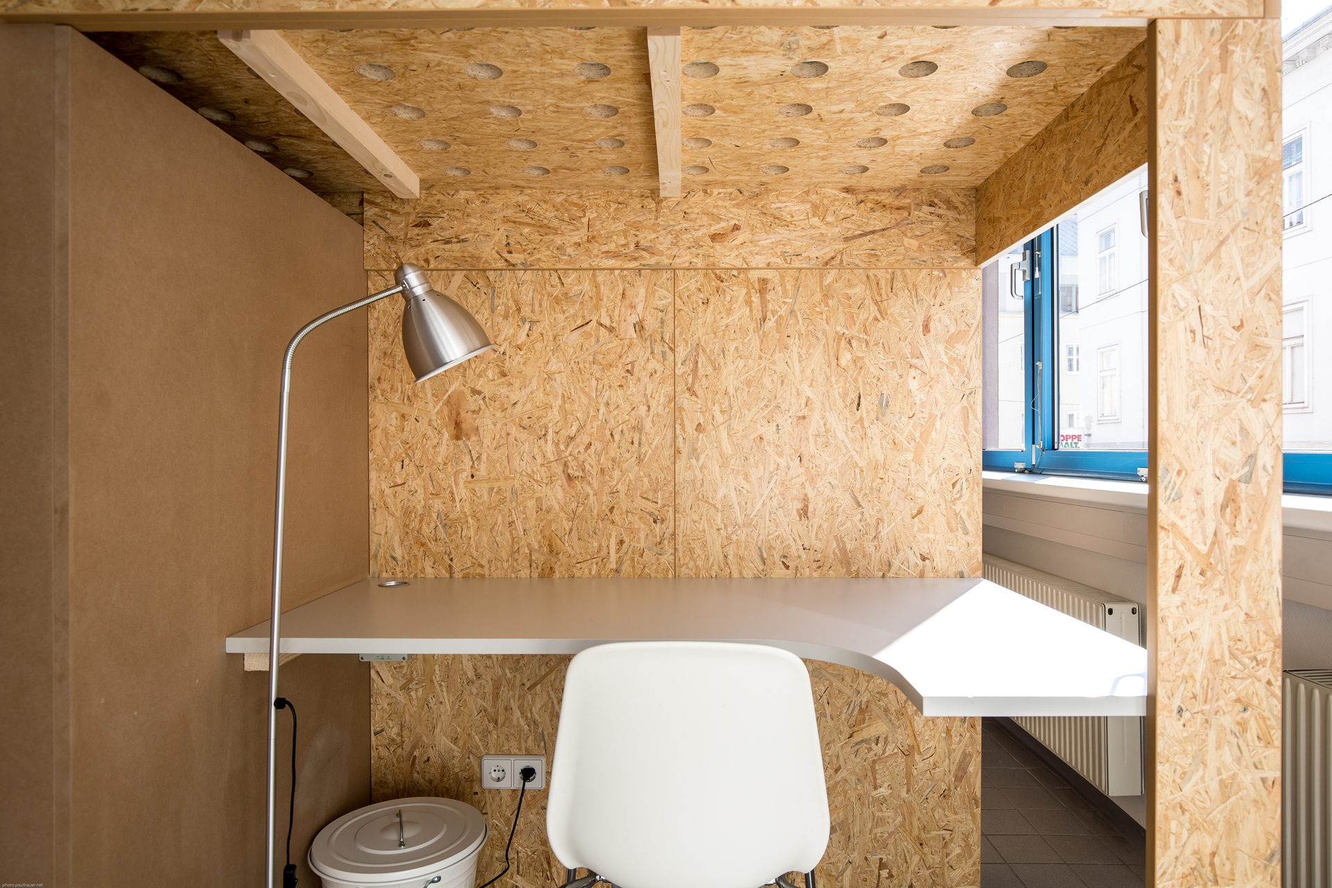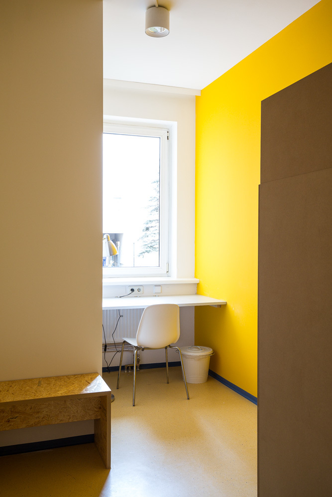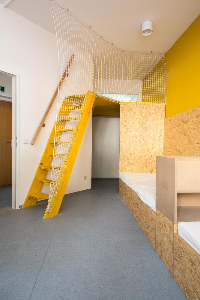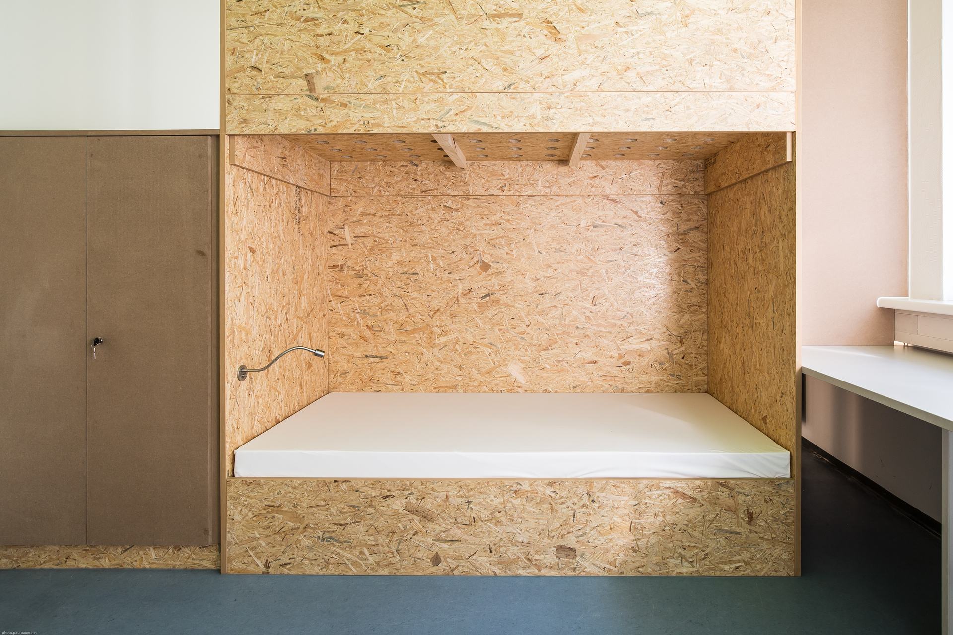 umcodierbaren, ganz persönlichem Spiel- und Lebensraum werden. Eine Matratze ist ein Bett ist ein Plateau ist eine Schrankdecke ist eine Leseecke ist ein Bettkasten ist eine Spielwiese. Erst die Vorstellungskraft der Bewohner macht aus den Möbeln was auch immer sie sein sollen und diese Art der Improvisation ist in die Einrichtung von vorne herein eingeschrieben. Das schafft eine riesige Vielfalt der Nutzungsmöglichkeiten und soll die Kinder und Jugendlichen dazu anregen, ihrer Fantasie freien Lauf zu lassen, um ihren eigenen Lebensraum zu definieren. Die Bewohner sollen sich ihre Zimmer aneignen und sie so benutzen können, wie sie wollen.
