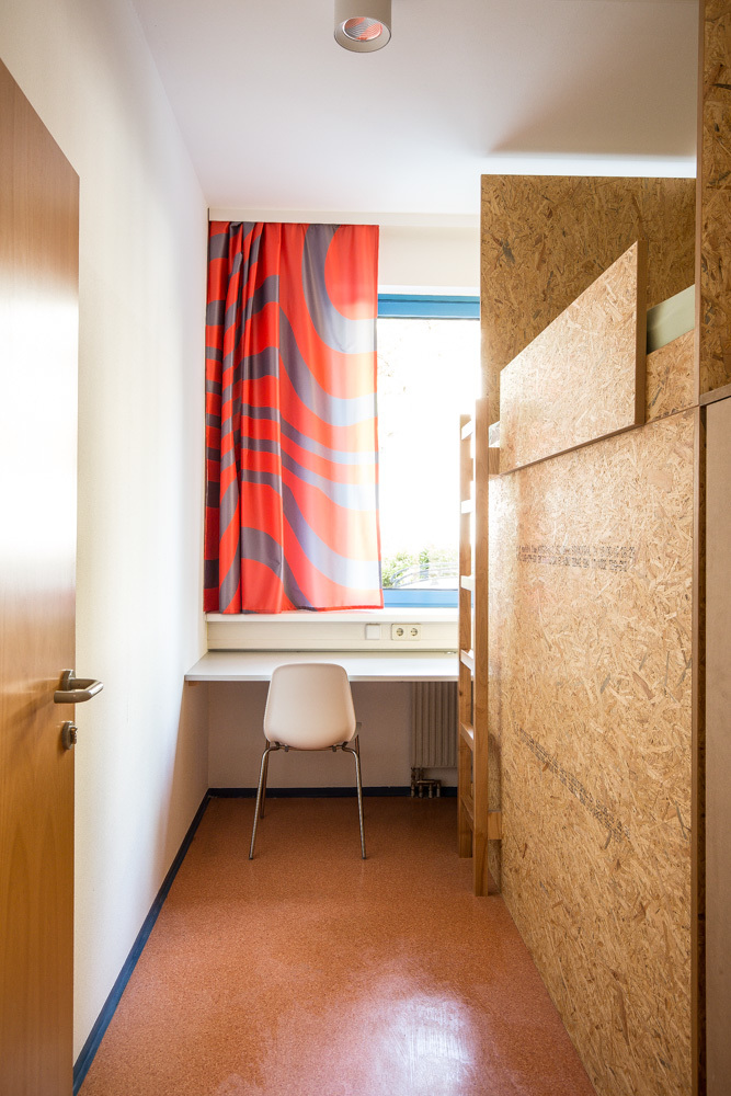 An anonymen Orten hält man sich auf; Wohnen beginnt da, wo das Eigene ist. Die Kinder und Jugendlichen sollen sich diese lebendige Umgebung, ihre Räume und Einrichtung zum eigenen Zuhause machen, auf das sie stolz sind. In der Hoffnung, dass er diesen jungen Menschen eine Starthilfe sein kann, wird hier ohne große Kosten wohnlicher und individueller Möglichkeitsraum geschaffen, damit sie Heimat in einem Land finden können, das bald nicht mehr das Fremde sein soll. (Text: Architekt:innen)