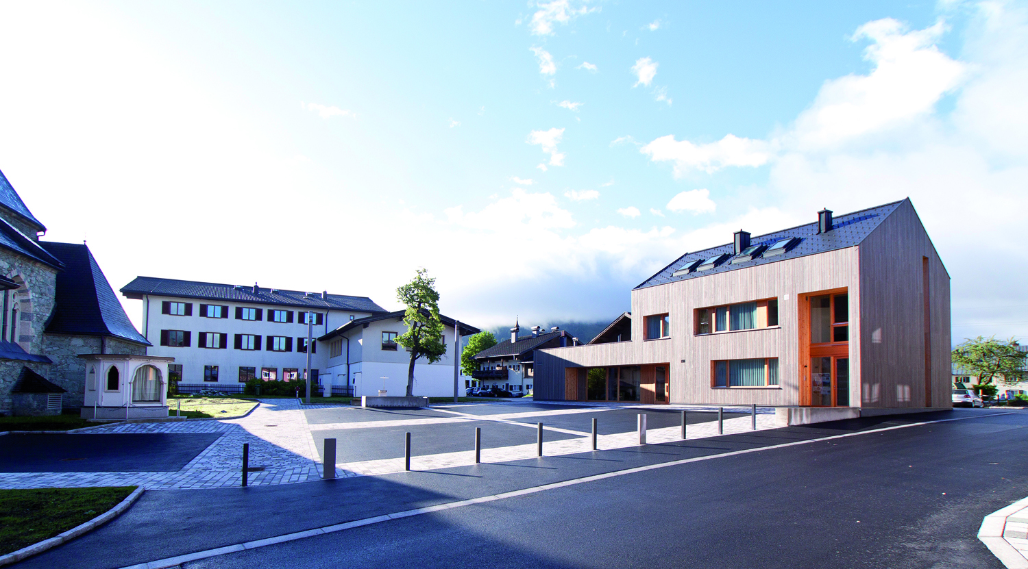 Das in Holzbauweise errichtete Niedrigstenergiehaus garantiert durch seine wärmegedämmte Hülle einen minimalen Einsatz an Heizenergie und dadurch geringstmögliche Betriebskosten. Das neue Gebäude enthält neben den administrativen Funktionen wie der Pfarrkanzlei und den dazugehörigen Besprechungs- und Archivräumlichkeiten zwei Wohnungen, eine für den Seelsorger und eine Garçonniere. Herzstück des neuen Pfarrhauses ist der Pfarrsaal, der für 60, bei Hinzunahme der Foyerfläche für maximal 100 Personen ausgelegt ist. Weiters wurden entsprechend große Lagerflächen für die unterzubringenden kirchlichen Utensilien errichtet. (Text: IAS auf Basis Text Architekt)