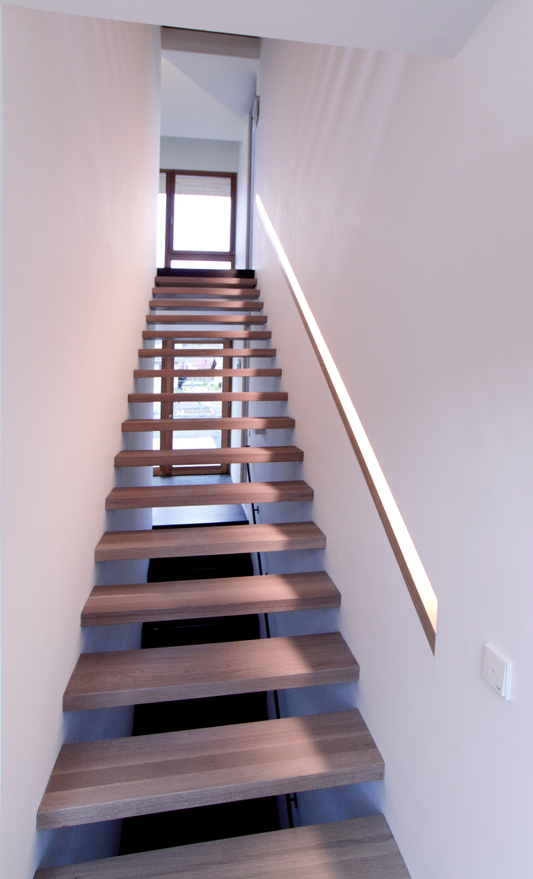 Die Fassadenbekleidung besteht aus sägerauer Lärche, die mit einer speziellen Lasur behandelt den natürlichen Vergrauungsprozess vorweg nimmt und eine gleichmäßige Oberfläche ohne zusätzliche Nachbehandlung gewährleistet. Die Konstruktion der Fassade legt Wert auf konstruktiven Holzschutz, auch wenn aus gestalterischen Gründen auf Dachvorsprünge verzichtet wurde. Die gestalterische Linie wurde mit Wand- und Deckenverkleidungen, Fußböden und Fenstern aus Lärche im ganzen Gebäude weitergeführt.