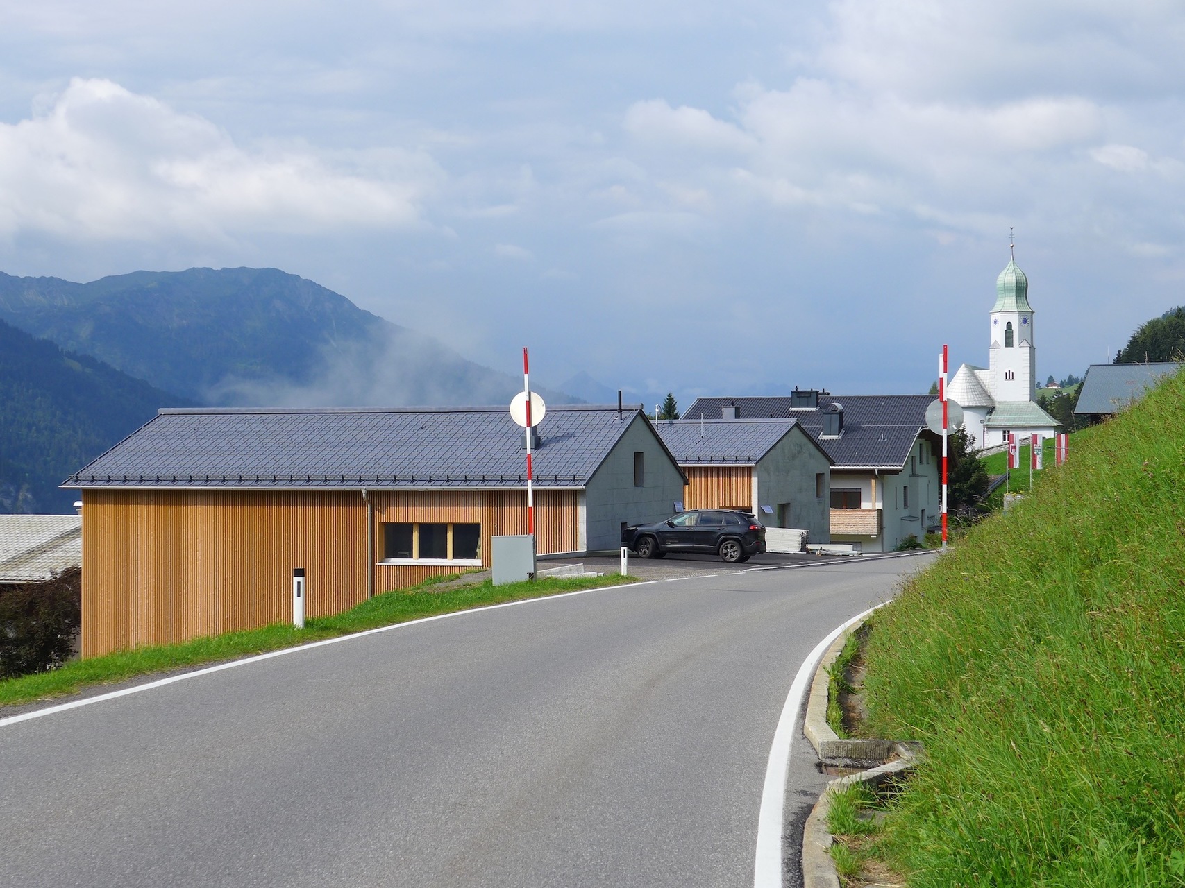 Die lose Streusiedlung an der Südflanke des Passes bildet so ziemlich genau die geografische Mitte Vorarlbergs. Die Bevölkerung liegt mit rund 450 Einwohnern nach einiger Talfahrt wieder auf dem Stand von vor rund 150 Jahren. Der Städterin mag es seltsam erscheinen, jedoch im Sinne der kleinen Kreisläufe und der Aufwertung auch der höchsten Bergdörfer wurde auf Kommunal- wie auf Landesebene dem Wunsch eines eigenen multifunktionalen Vereinshauses nachgegeben, welches heute wichtige Infrastruktur und Gerätschaft für den Katastrophenfall bereithält.