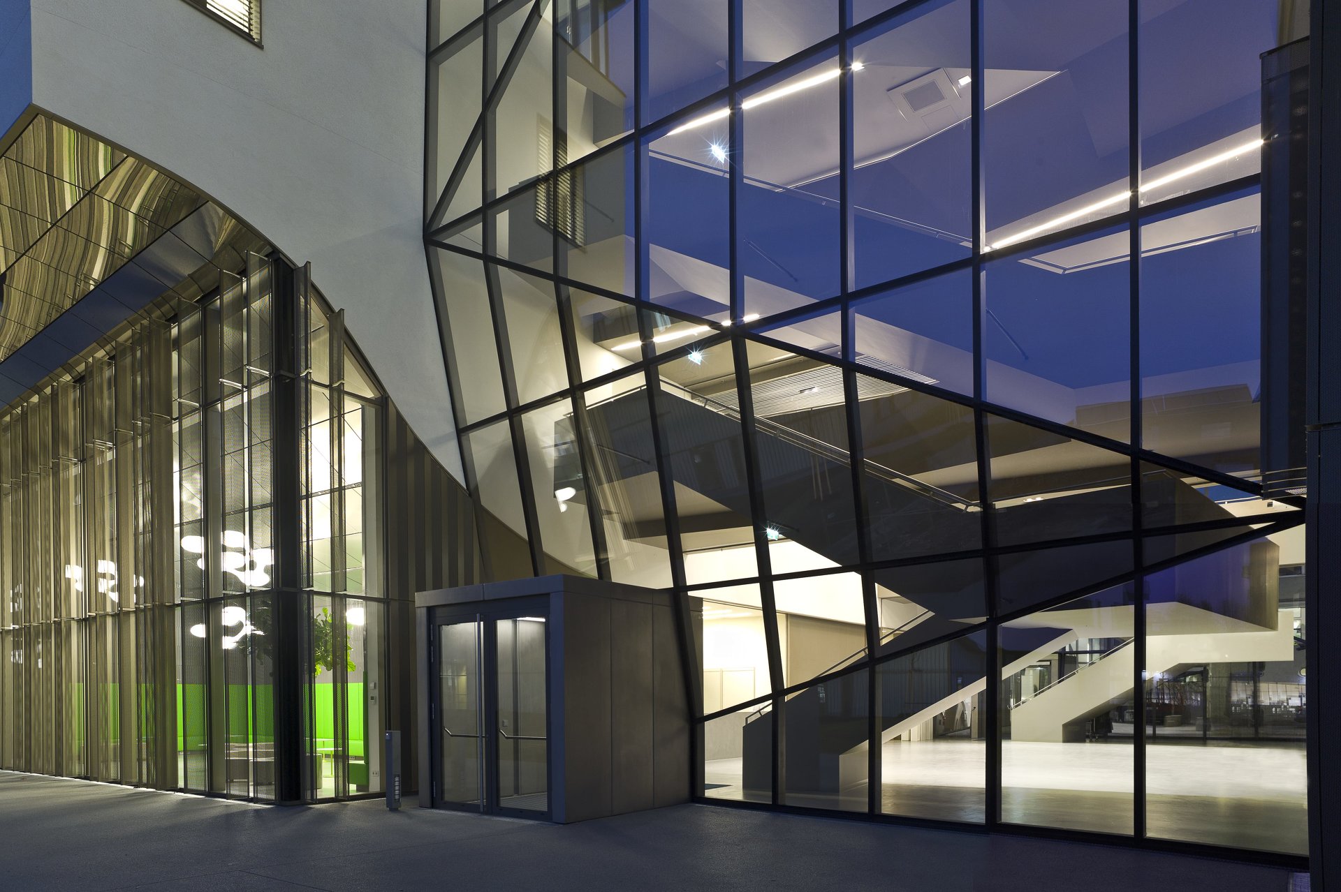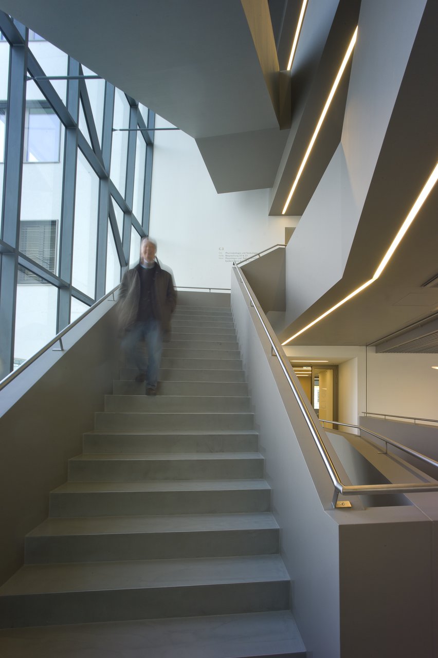 In den östlichen Obergeschossen befinden sich zwei Hörsäle, große Laborräume sowie Büros für die Institutsmitarbeiter. Zugehörig zu den Laborräumen gibt es hier diverse Nebenräume, beispielsweise Räume für Zellkultur, Mikroskopie, zur Lagerung von Proben, Spülküchen und Geräteräume. Im Westteil des ersten Obergeschosses sind Simulationsräume situiert, die den Studierenden eine reale Operationssituation vorgeben. Darüber weitere laborführende Institute. Das vierte Obergeschoss stellt eine Besonderheit dar: hier wurde für die Forschung ein vollwertiges Reinraumlabor (GMP Labor) errichtet. Der Neubau der PMU ist die Schnittstelle im Gesamtensemble des STADWERK Life Siences Campus - ein Raum für Forschung, Lehre und Kreativität. Der Baukörper ist als Stahlbetontragwerk ausgeführt, der im Erdgeschoss aufgeständert ist und dessen Unterseite in der Höhenentwicklung frei geformt ist. Ein aus tragenden Wandscheiben bestehender Rost ermöglicht im ersten Obergeschoss die Lastableitung der Innenstützen der auskragenden Bereiche. In Fassadenebene erfolgt die Lastableitung und Aussteifung über die Parapettträger, die in Kombination mit den Stützen bzw. Scheibenelementen zwischen den Fenstern eine steife Hülle bilden. Diese ermöglicht die Auskragung über dem Erdgeschoss in Fassadenebene mit einer frei geformten Untersicht. Die bandartigen Fensteröffnungen sind dementsprechend statisch optimiert.