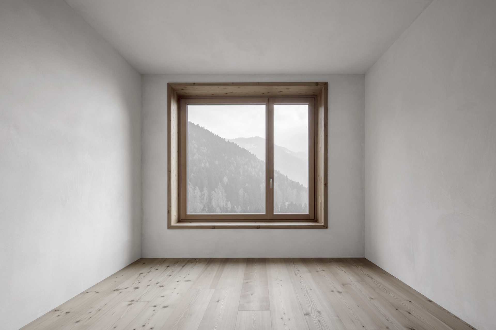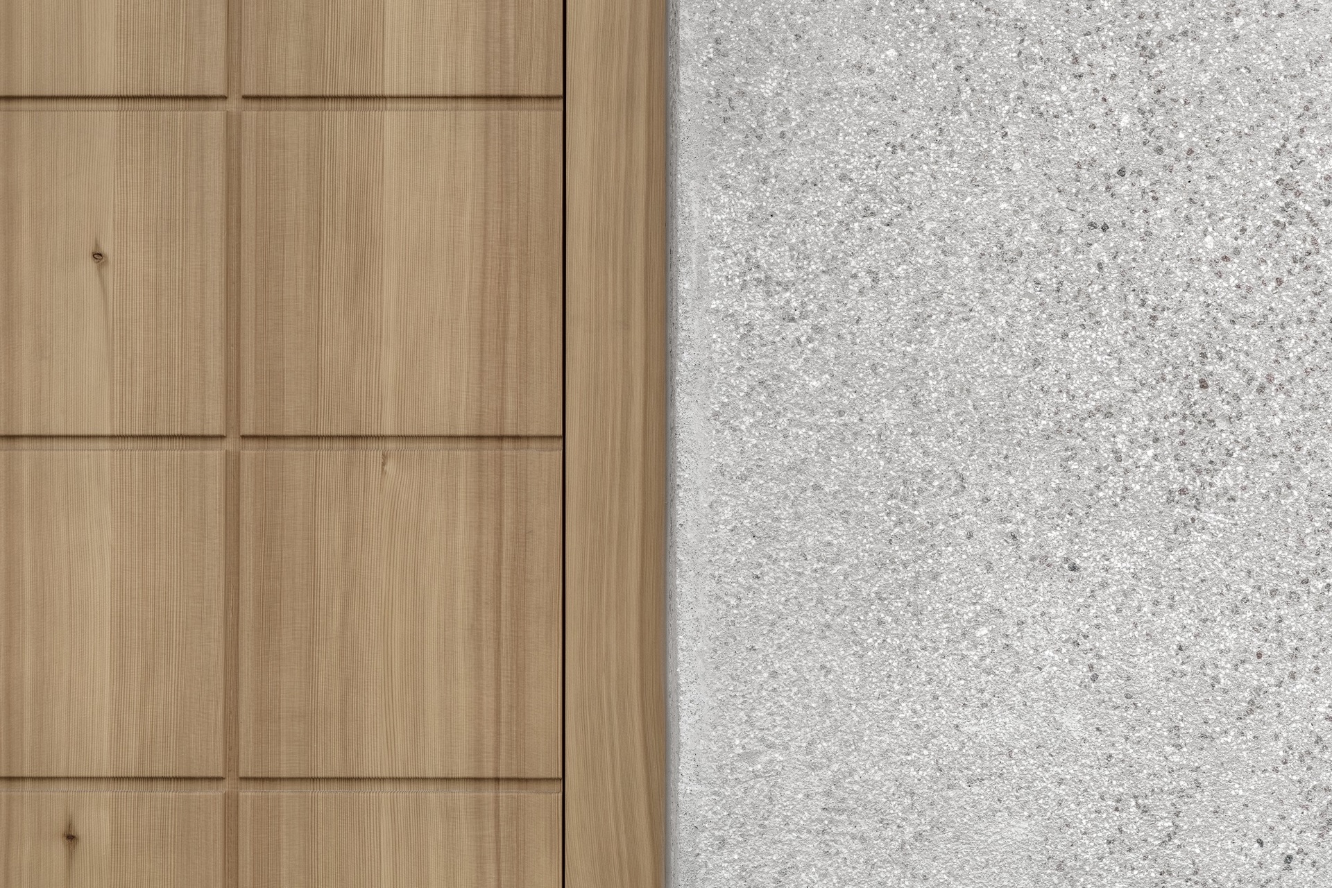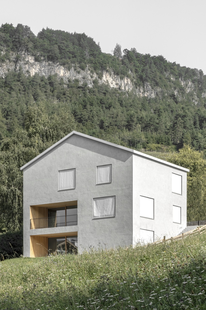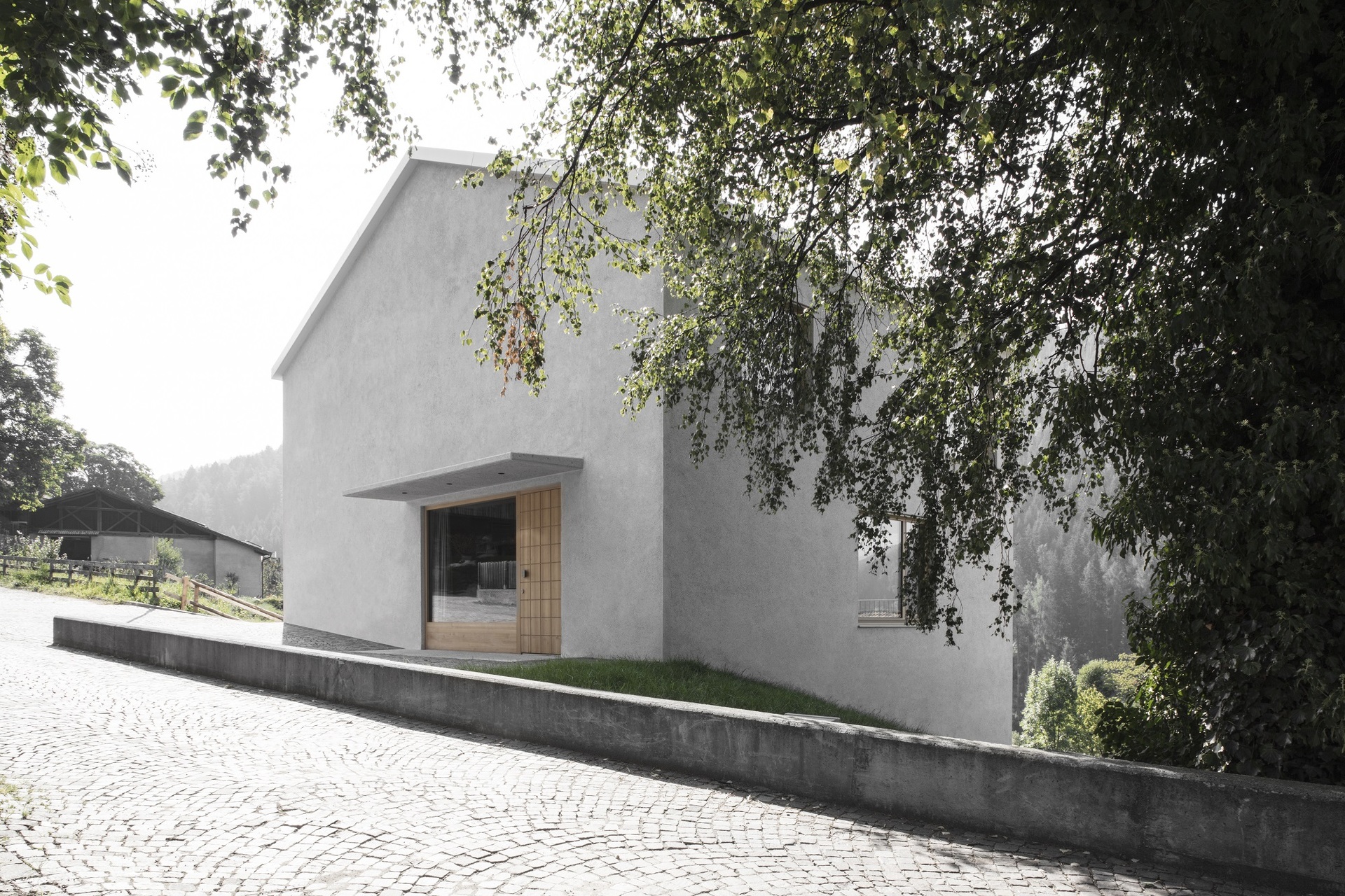 Im Inneren ermöglichen Sicht- und Kommunikationsbezüge das Erfassen des Gebäudes in alle seinen Dimensionen. Die Reduktion auf das Wesentliche zeigt sich auch hier in der Auswahl der Materialien: geglättete Putzoberflächen aus Lehm und Kalk mit Sandzuschlägen aus Dolomit und Porphyr, geschliffene Betonestriche mit Dolomitzuschlägen, Holzelemente aus lokalem Lärchenholz. (Text: Leicht gekürzter Text des Architekten)