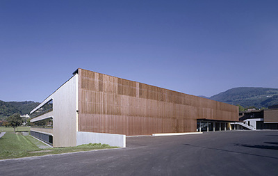 Die Hauptschule der drei Vorarlberger Gemeinden Klaus, Fraxern und Weiler war Mitte der 1970er Jahre nach einem pädagogischen Konzept errichtet worden, das großzügige Gemeinschaftsflächen vorsah. Die für heutige Verhältnisse nur gering gedämmte Betonkonstruktion wurde elektrisch beheizt. 25 Jahre später waren diese Konzepte ein Sanierungsfall und der Grundrisszuschnitt für den aktuellen Raumbedarf denkbar ungünstig. Eine Studie ergab Sanierungskosten in der Größenordnung von sieben Millionen Euro, weshalb sich die Gemeinde zum Verkauf der Schule zwecks Umnutzung in einen Gewerbepark und den Neubau eines Gebäudes für 350 Schüler entschloss. Der vorhandene Turnsaal soll weiter genutzt und im Rahmen einer zweiten Baustufe saniert werden. Aus dem zweistufigen Wettbewerb gingen im Frühjahr 2001 »Dietrich|Untertrifaller« als Sieger hervor.