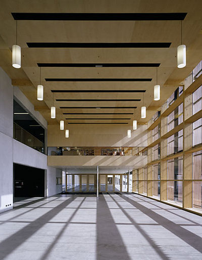 Ein wesentlicher Beitrag zur Realisierung des Gebäudes lag in der Erstellung eines Brandschutzkonzepts durch das Linzer ibs (Institut für Brandschutz und Sicherheitsforschung). Sowohl der Holzbau an sich als auch der durch den Luftraum zusammengefasste Brandabschnitt mit 4.200 m² waren in den einschlägigen Vorschriften nicht vorgesehen (F 90 für tragende Bauteile bzw. max. 1.600 m² pro Brandabschnitt laut Vorarlberger Schulbauverordnung und Vorarlberger Baugesetz). Es gibt die Möglichkeit – und es wird sie vermutlich auch in der zukünftig österreichweit harmonisierten Bautechnikverordnung neben diesen kategorischen Vorgaben geben –, durch ein Gutachten die Erreichung der vorgeschriebenen Schutzziele nachzuweisen. In Abstimmung mit der zuständigen Brandverhütungsstelle Vorarlberg wurde die daraus entstandene Endfassung schließlich im Genehmigungsbescheid vorgeschrieben. Leider gibt es behördlicherseits vor allem seit den juristischen Nachbeben der Brandkatastrophe von Kaprun eine unterschiedliche Bereitschaft, sich auf diese effektive, aber anspruchsvolle Alternative zum wortgetreuen Gesetzesvollzug einzulassen.