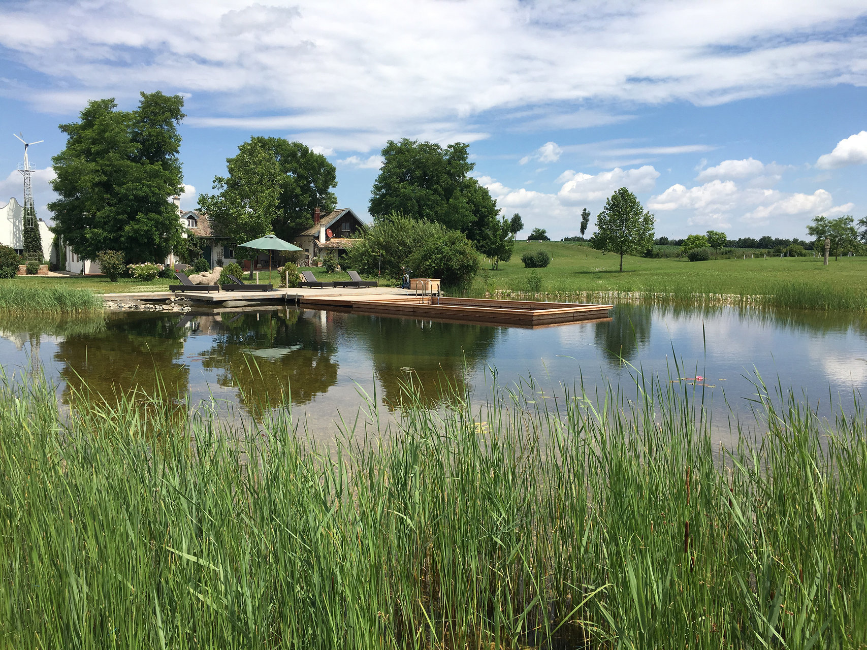 Ein Pool aus Fichte und Weißtanne wurde in einen bestehenden Schwimmteich eingebaut. Damit wurde der Schwimmbereich klar vom restlichen Teich abgegrenzt und auf diese Weise eine Wasserfläche geschaffen, die frei von Pflanzen und Amphibien ist.Jury: Venedig ist auf Holz gebaut – Holz vollständig in Wasser. Nach diesem System ist der Holc Naturpool konstruiert: Die Vollholzkonstruktion ist vollständig im Wasser. Dadurch wird das Holz voll durchfeuchtet und konserviert. Im Bereich des Wasserspiegels sind die Holzbauteile durch ein Metallprofil entkoppelt. Eine durchdachte Konstruktion, welche den Fächer der Holzanwendung weiter öffnet. (Jurytext Holzbaupreis Kärnten 2017)