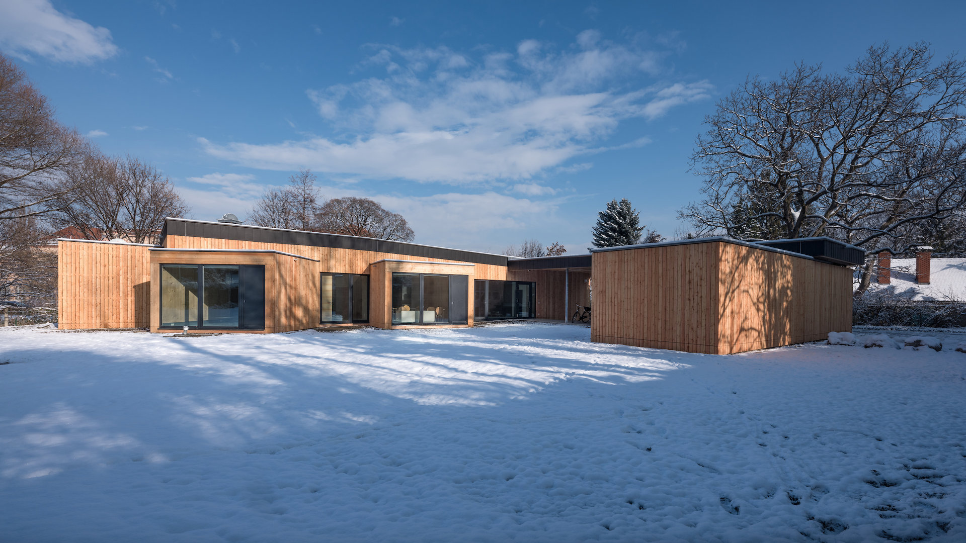 Anstelle der ursprünglich geplanten Lärchenfenster wurden Kunststofffenster mit Aluminium-Beknipsung montiert, innen mit Industriesichtqualität und sichtbarer E-Installation.